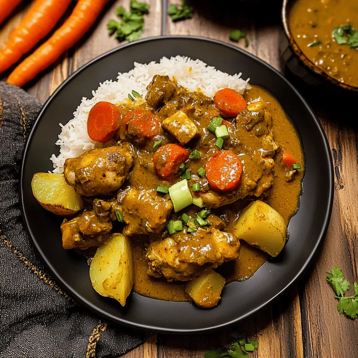 These Authentic Jamaican Curry Chicken preparations are fantastic for busy weeknights! You can marinate the chicken with the seasoning mix up to 24 hours in advance, allowing the flavors to thoroughly infuse. Additionally, chop the vegetables (carrots, potatoes, and peppers) a day before and store them in an airtight container in the refrigerator. To maintain the dish’s quality, brown the chicken just before cooking it, and avoid reheating it multiple times to preserve texture. When ready to serve, simply sauté the toasted curry powder, add the marinated chicken and vegetables, pour in the coconut milk and stock, and simmer until everything melds beautifully. This way, you save time while enjoying your flavorful meal!