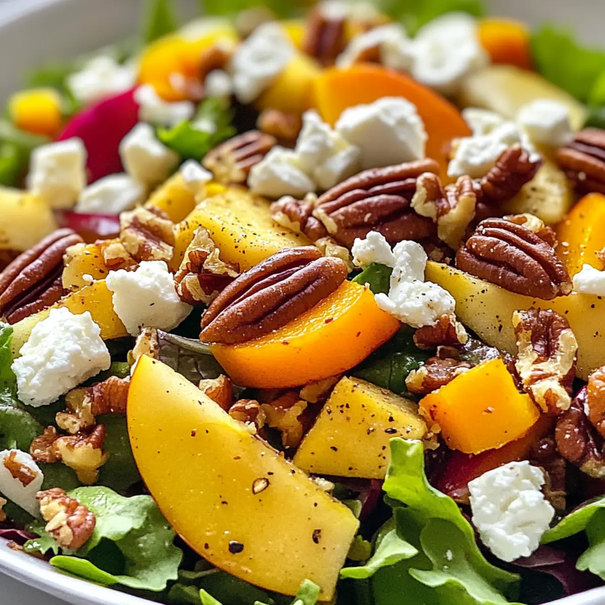 Toss the salad gently to coat all ingredients with the vinaigrette, being cautious not to bruise the greens. Serve the salad immediately for the best texture and freshness, showcasing the vibrant colors and delightful array of flavors that make this dish a perfect choice for cozy dinners and festive gatherings.