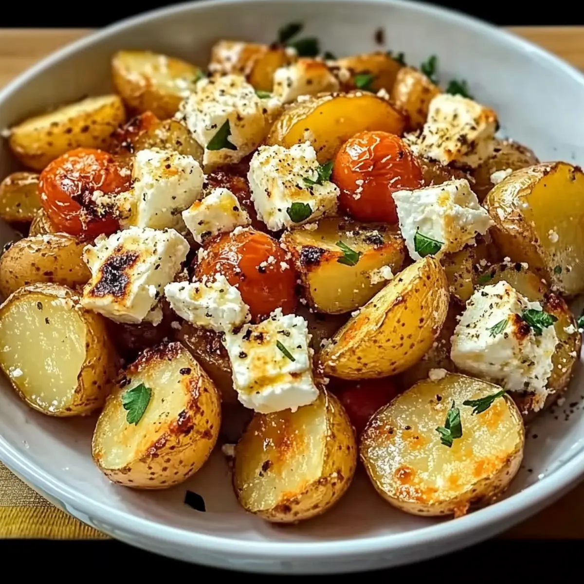 Check for Perfect Doneness: Look for golden-brown, tender potatoes and burst tomatoes before pulling the dish from the oven; overcooking can lead to mushy potatoes.
