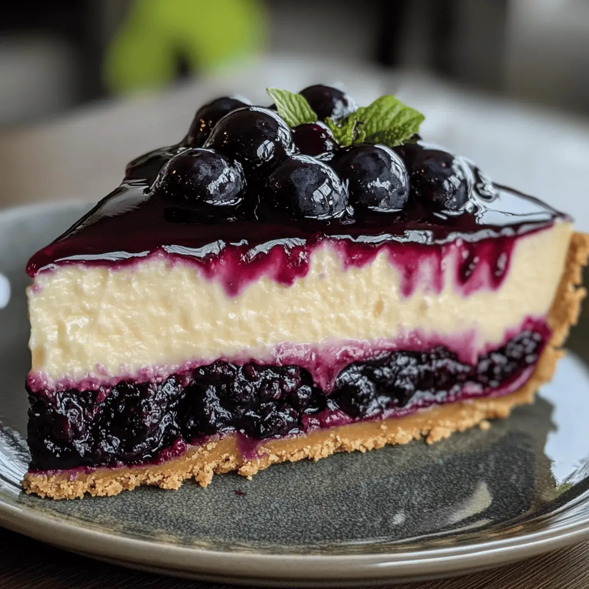 Chocolate Drizzle: A dark chocolate sauce adds a subtle bitterness that perfectly complements the sweet blueberries and creaminess of the cheesecake. Pair it freely!