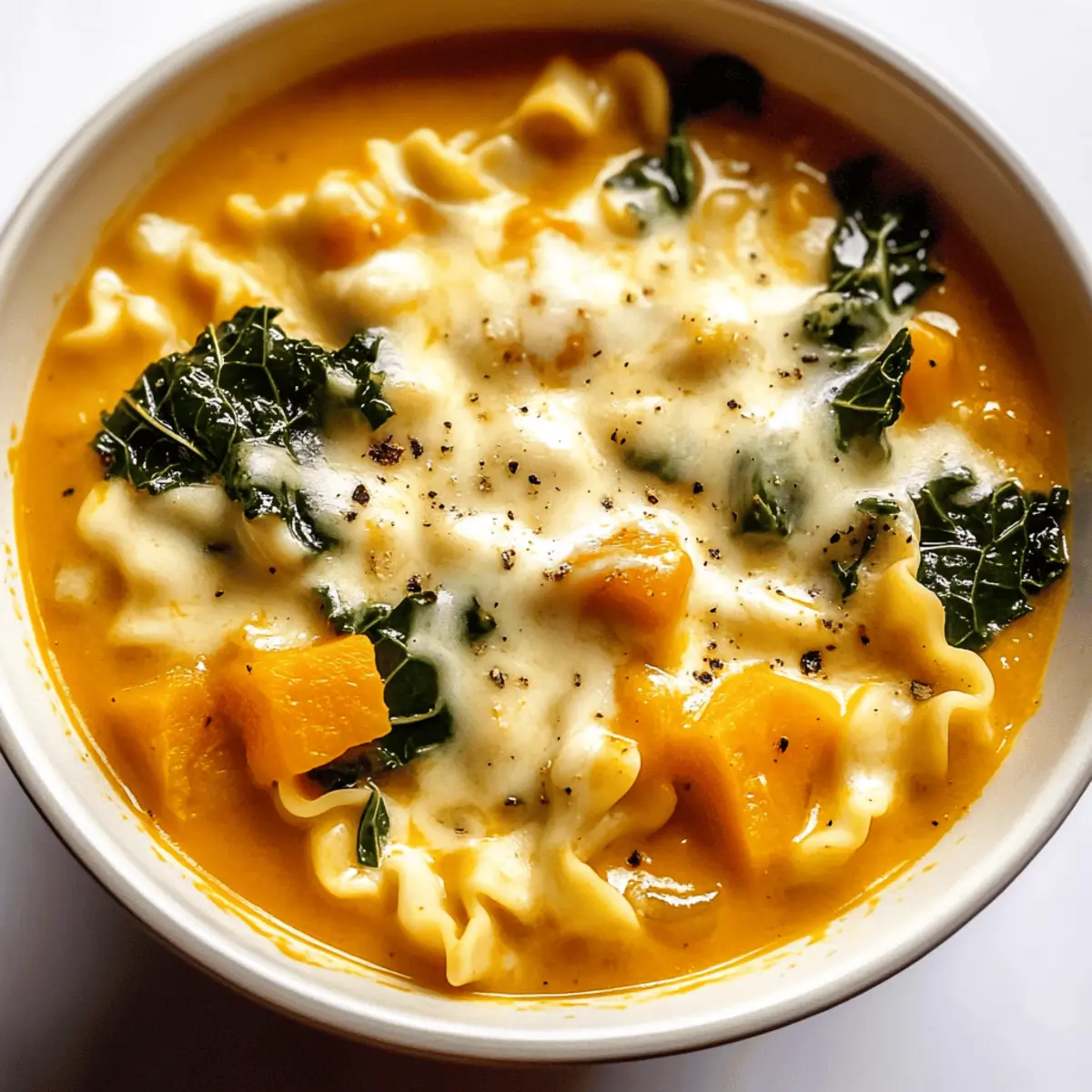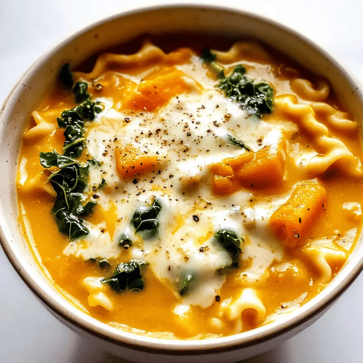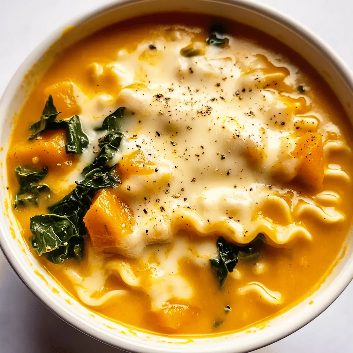 Cozy Butternut Squash Lasagna Soup with Kale & Mozzarella Delight