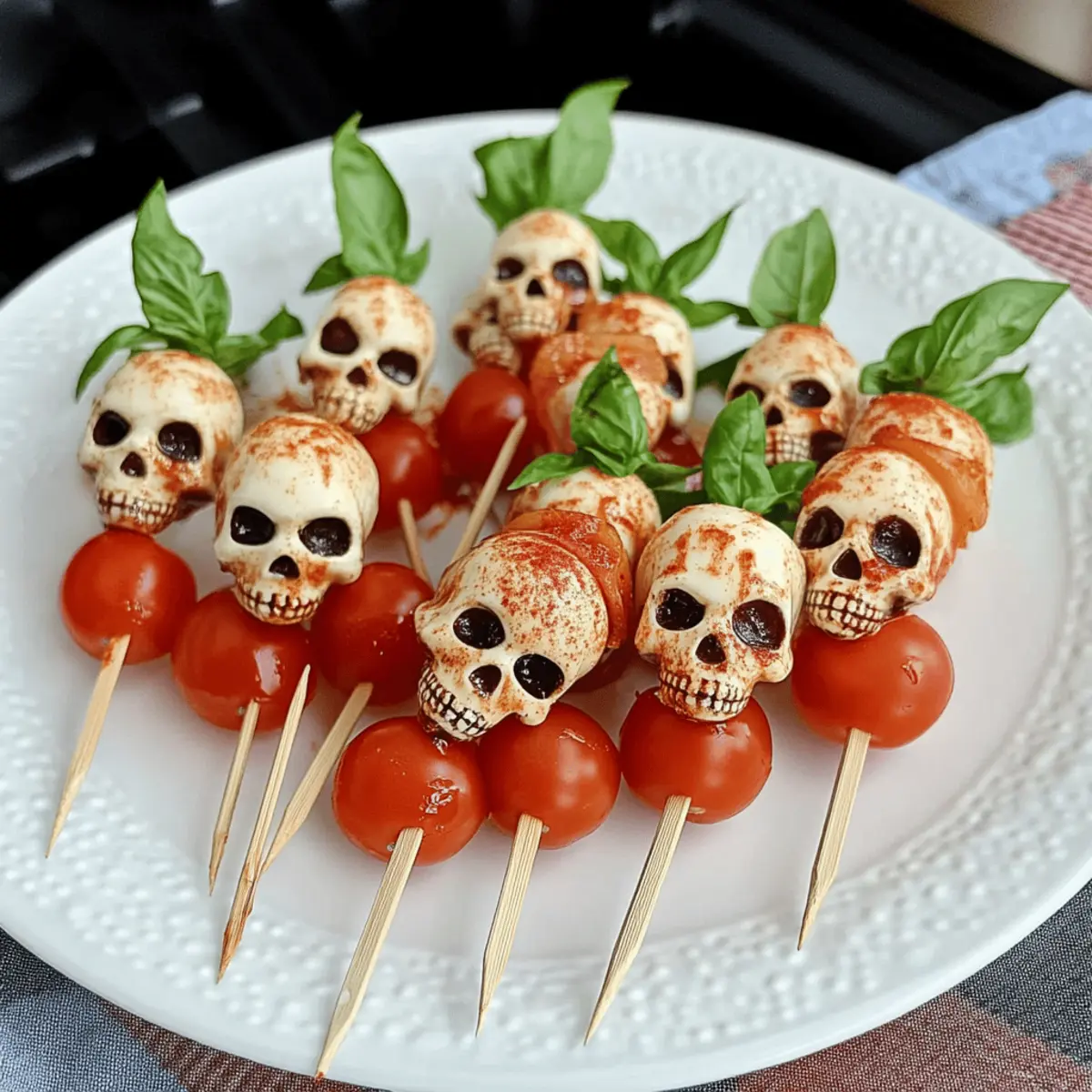 Delicious Halloween Caprese Salad Skewers with a Spooky Twist