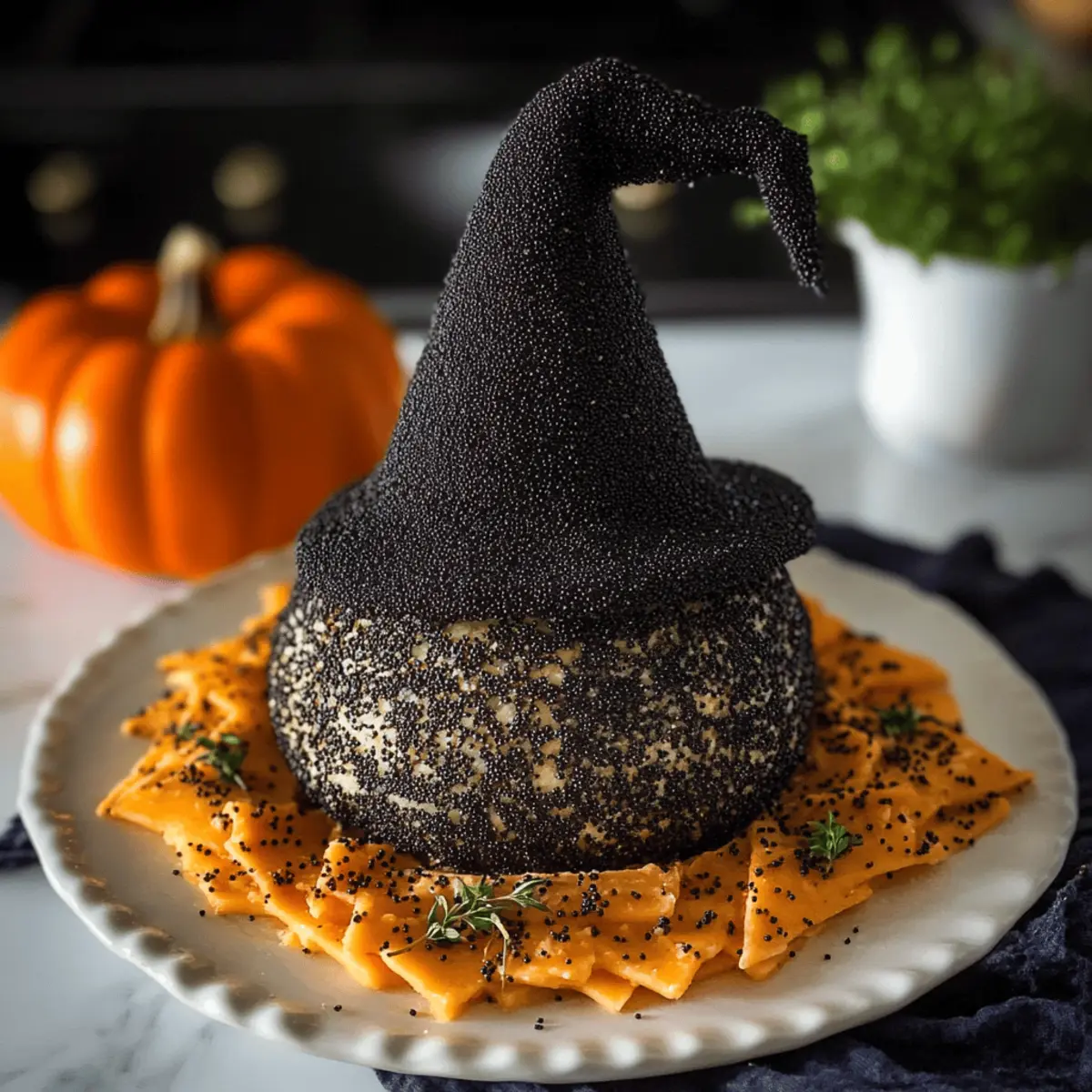 Charming White Cheddar Witch Hat Halloween Cheese Ball Delight