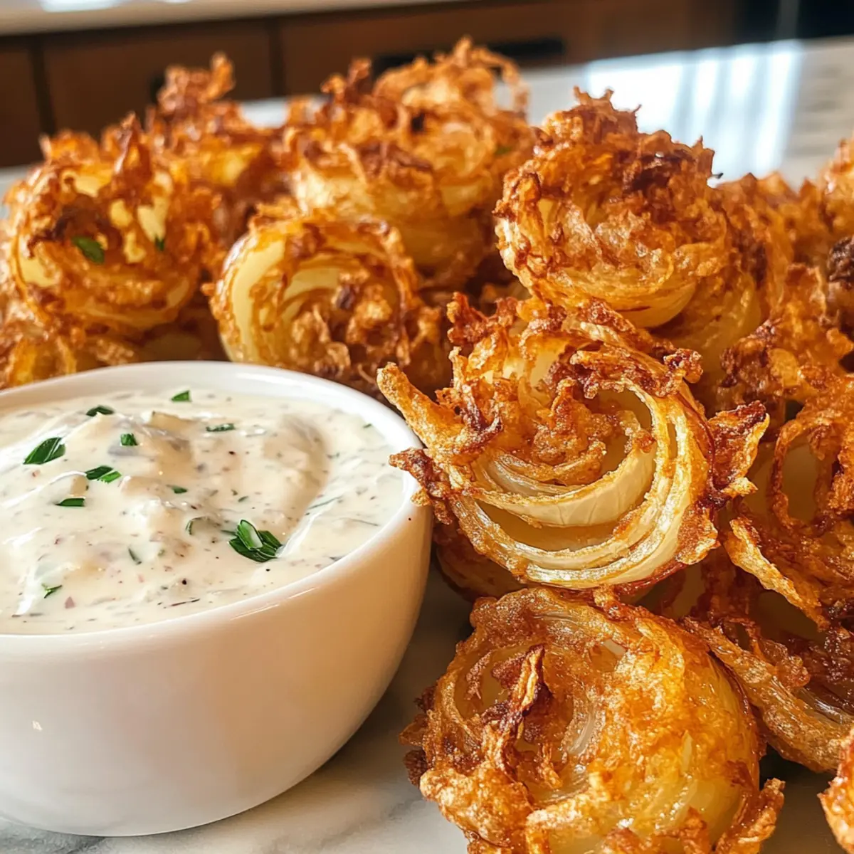Crispy Mini Bloomin’ Onions with Creamy Buttermilk Ranch Dip