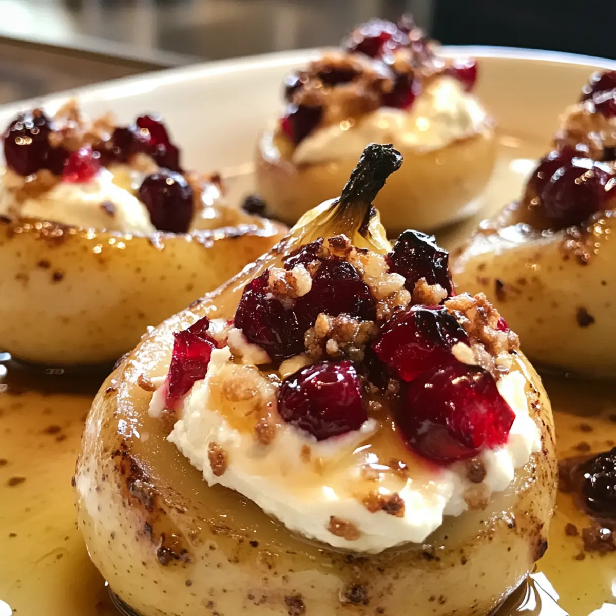 Baked Pears with Goat Cheese, Honey, and Cranberries Bliss