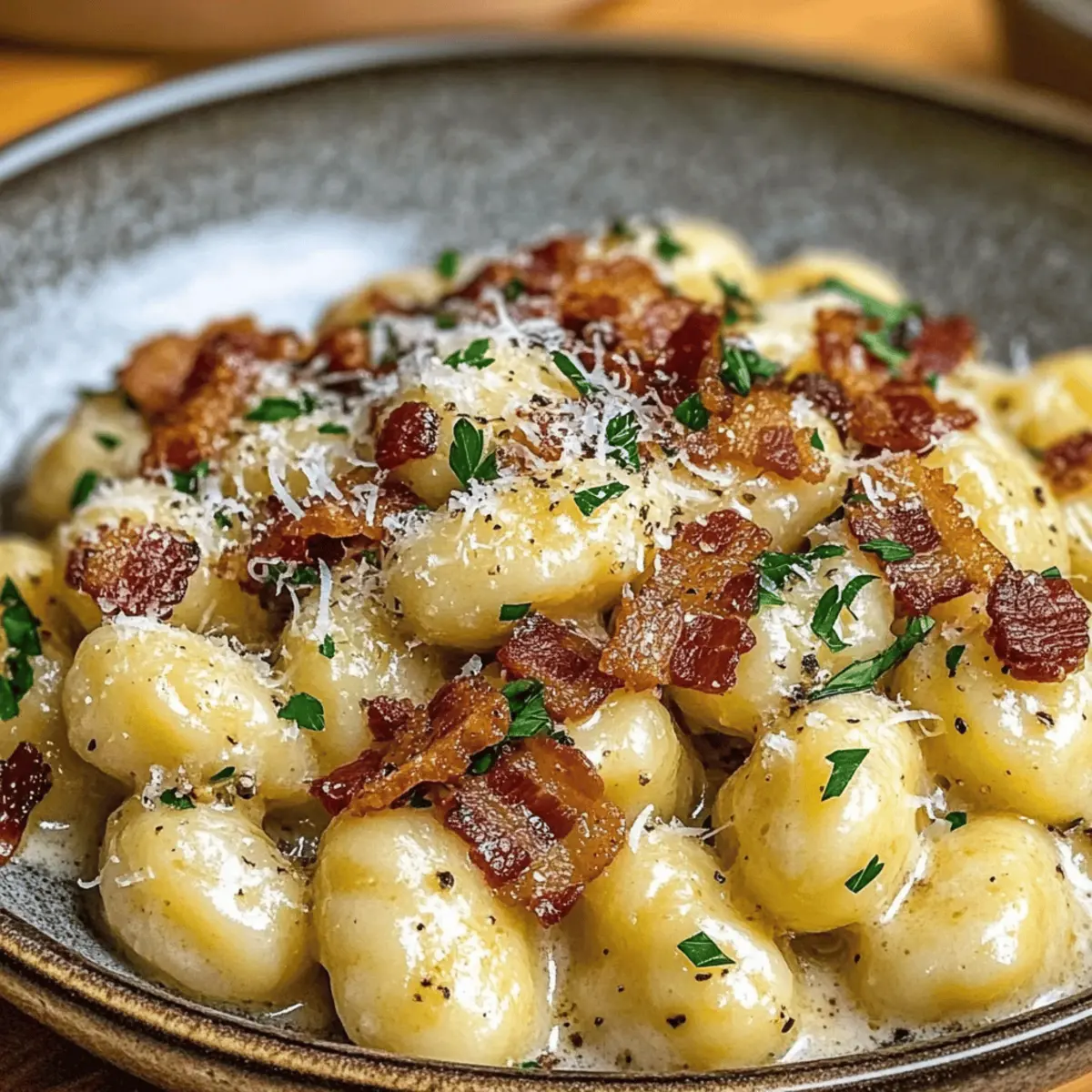 Creamy Gnocchi Carbonara with Bacon & Parmesan Bliss