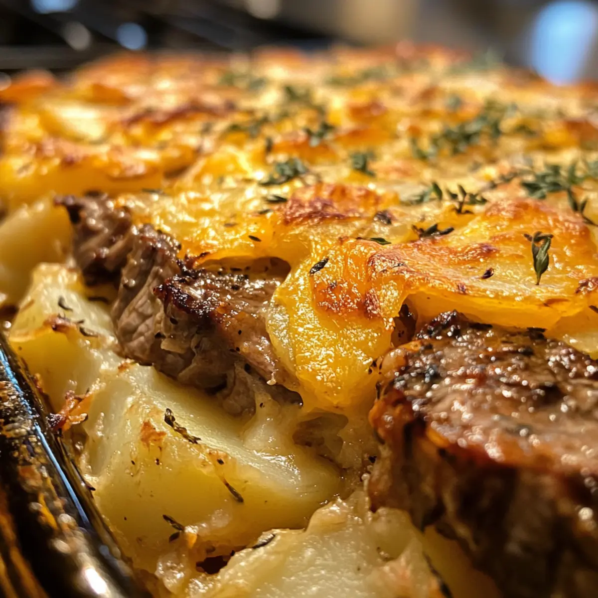 Garlic Butter Steak & Cheddar Potato Bake for Ultimate Comfort