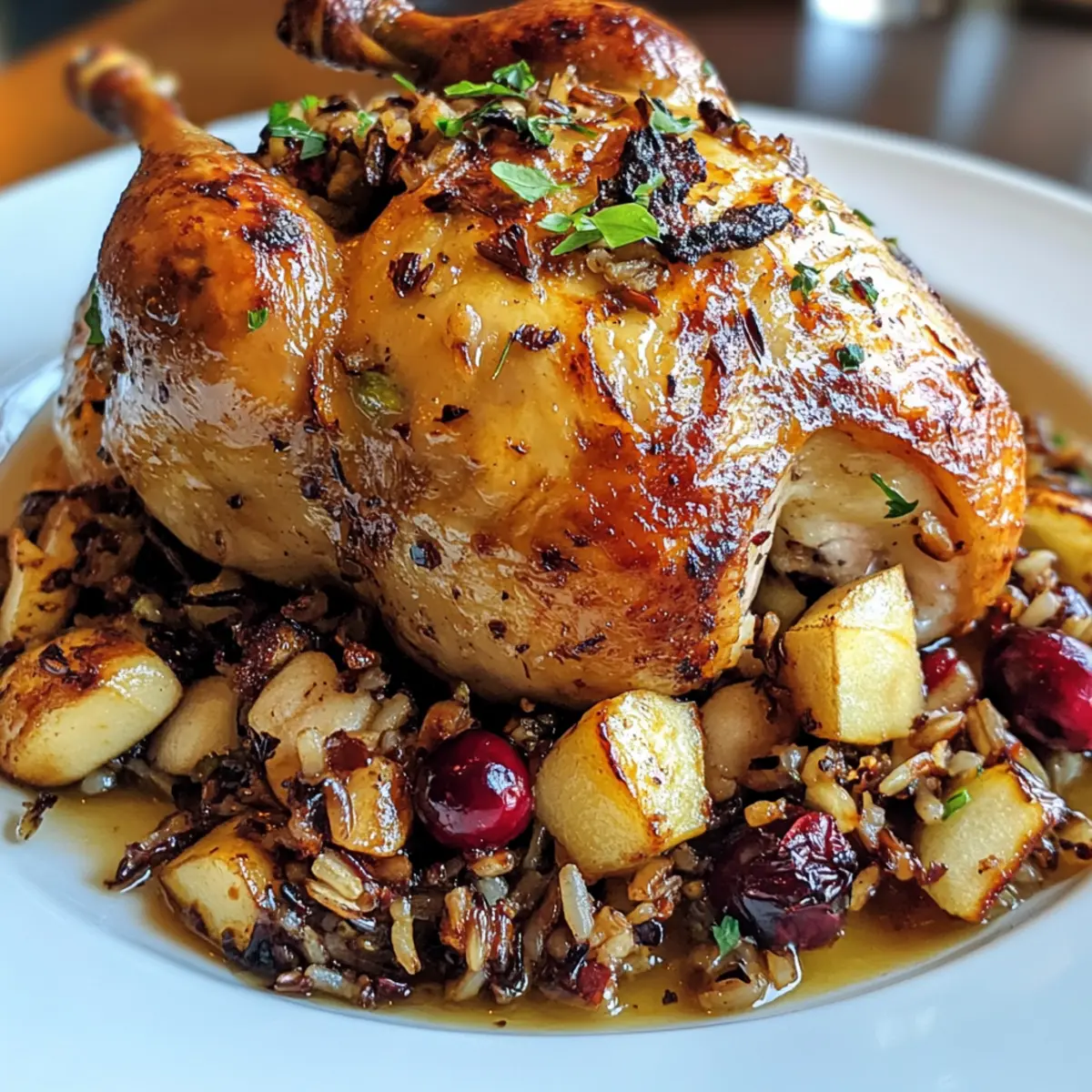 Succulent Cornish Hens with Apple-Cranberry Rice Stuffing