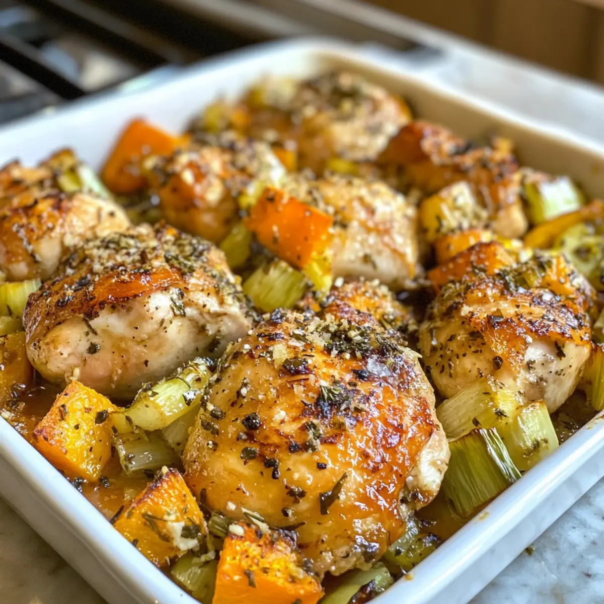 Warm and Comforting Roasted Chicken Leek and Butternut Squash Bake