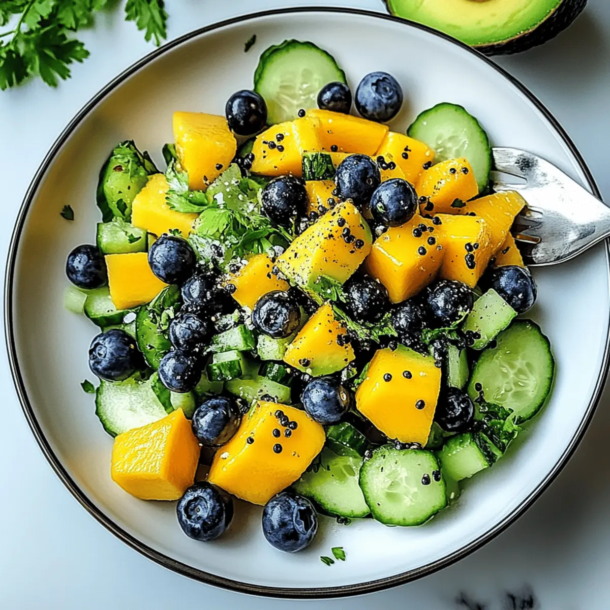 Mango Cucumber Salad with Blueberries and Avocado Bliss