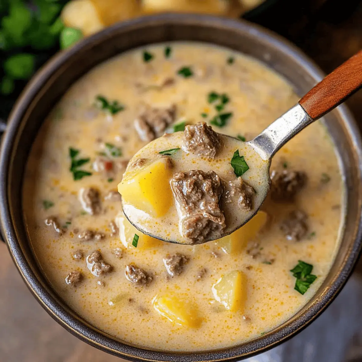 Use Lean Beef: Opt for lean ground beef to keep your Cheesy Beef and Potato Soup healthier without sacrificing flavor.