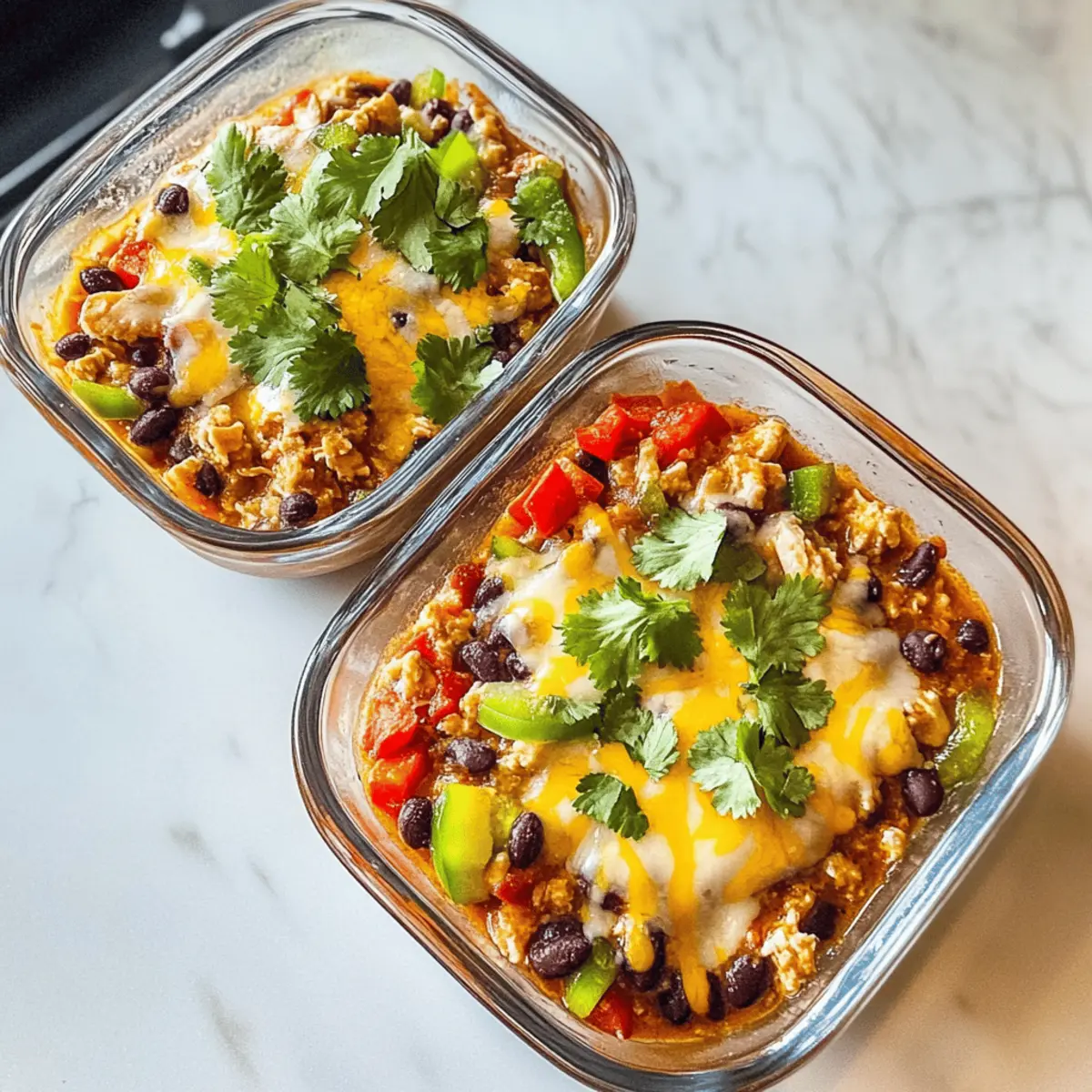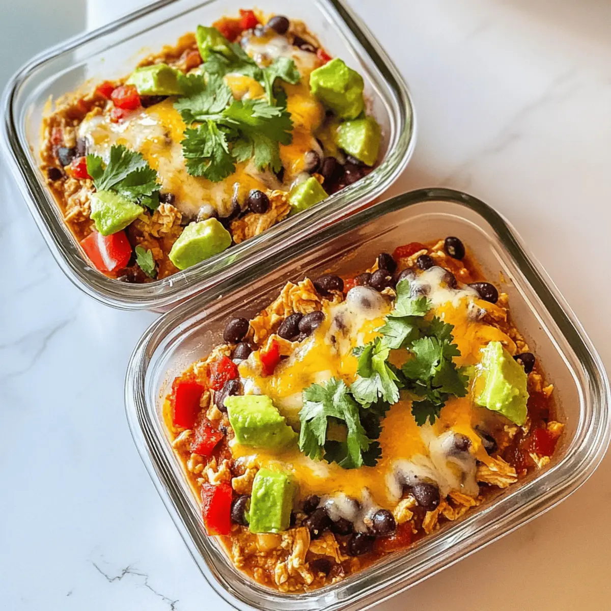 These High-Protein Chicken Cottage Cheese Enchilada Bowls are perfect for meal prep enthusiasts! You can prepare the cottage cheese mixture and combine it with shredded rotisserie chicken, taco seasoning, and veggies up to three days in advance. Store the mixture in an airtight container in the fridge to maintain freshness. For the best flavor, keep garnishes like cilantro, avocado, and Greek yogurt separate until you’re ready to serve. When you’re set to enjoy your bowls, simply heat the prepared mixture in a microwave-safe bowl with shredded cheese for 1-2 minutes until melty and bubbly, and add your fresh toppings. This way, you’ll have a delicious, nutritious meal in no time!