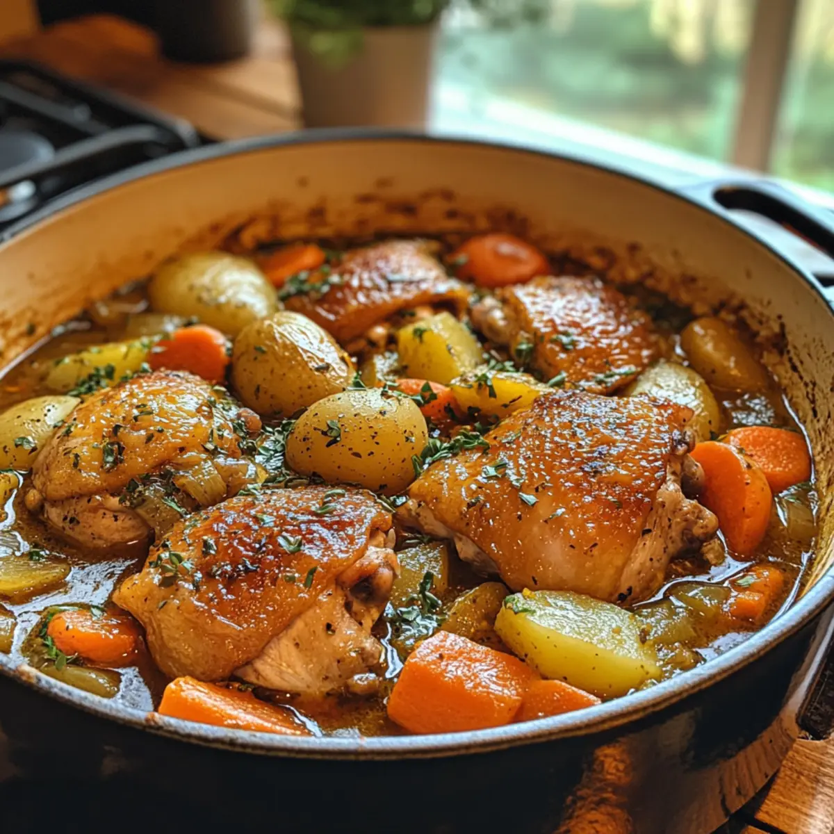 To achieve that wonderfully crispy skin on the chicken, always place it skin-side up in the pot and avoid submerging it completely in the sauce. I often recommend keeping an eye on the cooking time; a well-timed uncovering during the baking process will ensure that skin gets the lovely golden brown crisp you’re after!