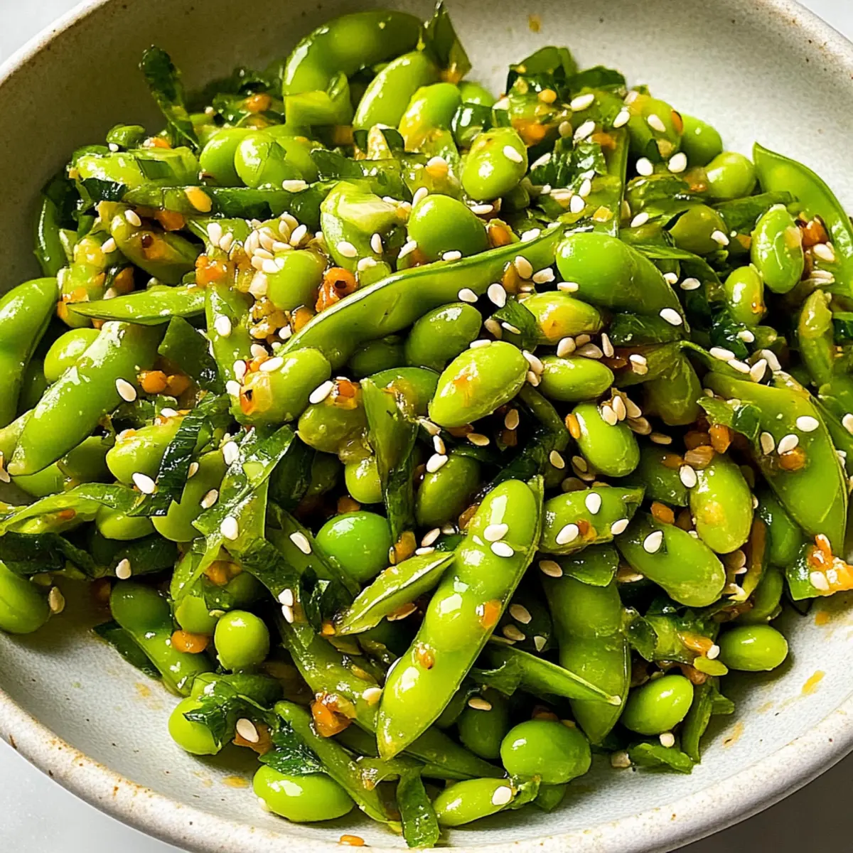 These Chili Crisp Snap Pea Salad components are perfect for making ahead, saving you precious time on busy weeknights! You can prep the snap peas, edamame, and scallions up to 24 hours in advance—just keep them stored separately in the refrigerator to maintain their crispness. The dressing can also be made ahead and stored in an airtight container for up to 3 days; simply give it a good shake before using to re-emulsify the ingredients. When you’re ready to serve, combine the prepped salad ingredients in a bowl, drizzle with the dressing, and toss for a quick, delightful meal that’s just as fresh and flavorful as when you made it!