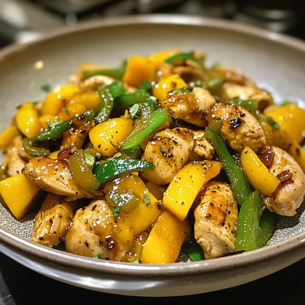 Carefully plate the stir-fry while it’s still hot, showcasing the colorful blend of chicken, mango, and peppers. Serve this delightful dish alongside a bed of steamed rice or in lettuce wraps for a fresh take. Enjoy the satisfying crunch and vibrant flavors of your homemade meal!