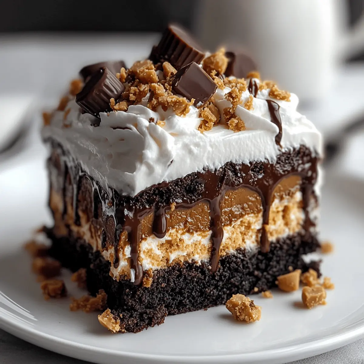 Decadent layers: The Chocolate Peanut Butter Poke Cake is a luxurious dessert that combines rich chocolate and creamy peanut butter in a delightful way.