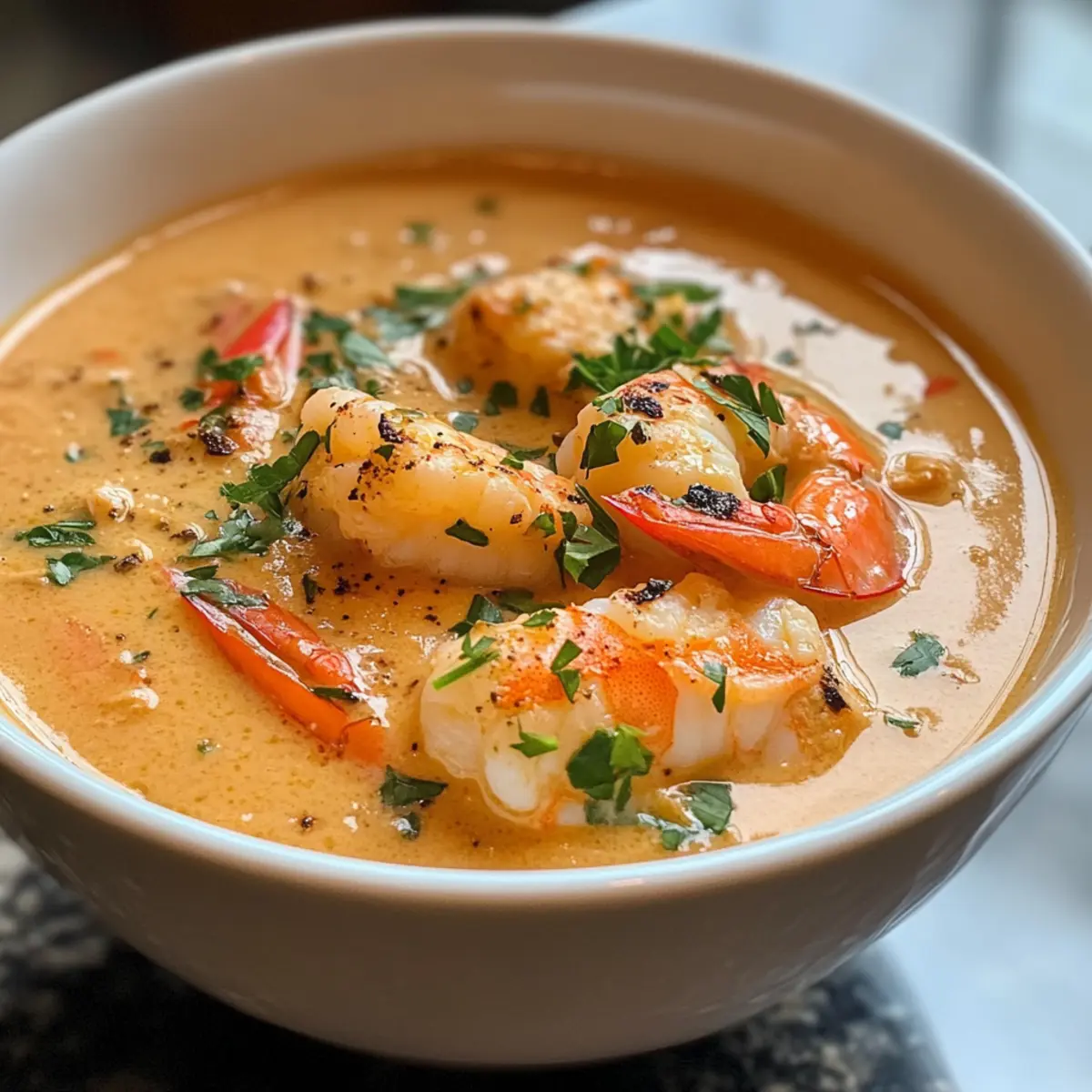 Crusty French Bread: The perfect vessel for soaking up the rich bisque; its chewy texture complements the velvety soup beautifully.