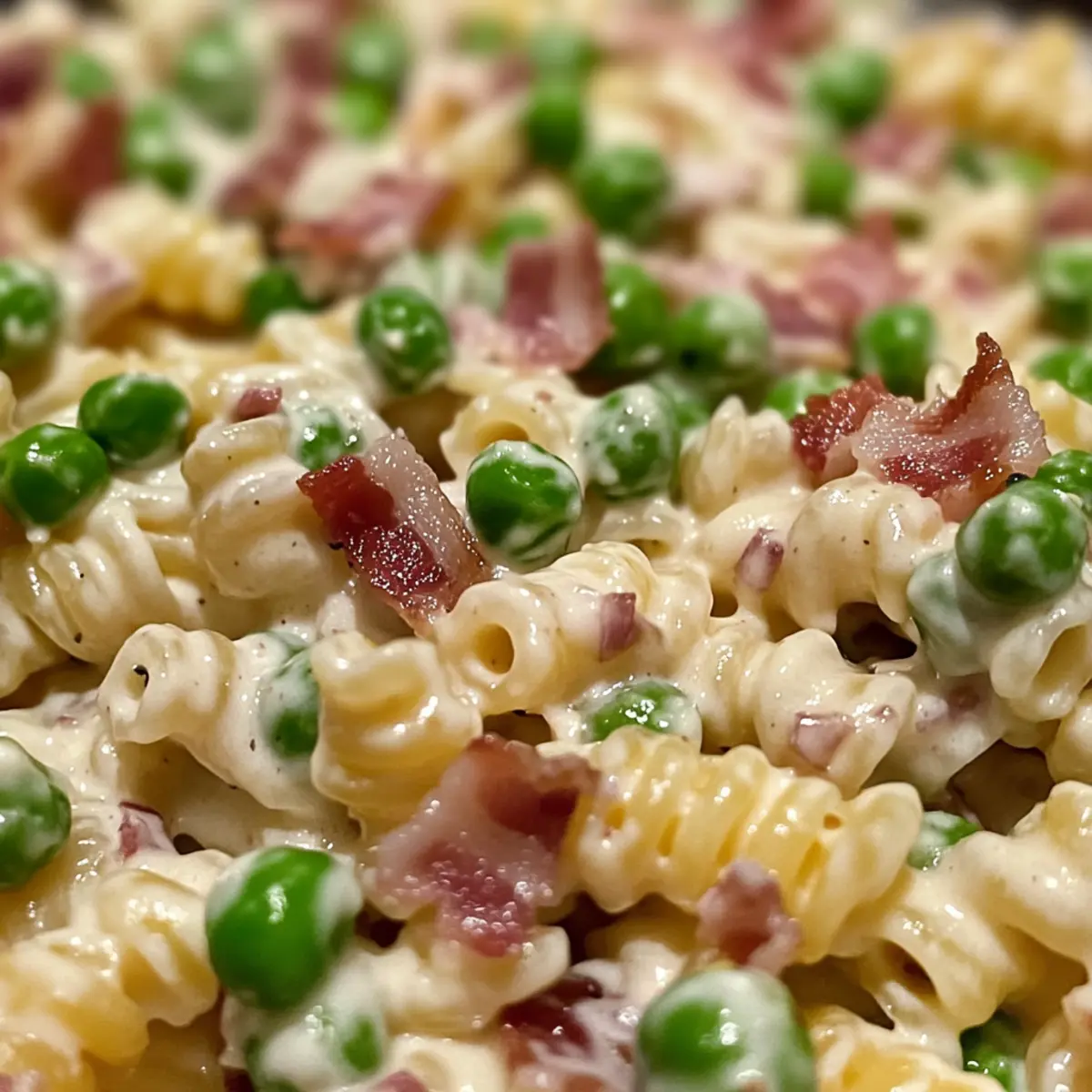 Not really! While some of the individual ingredients like pasta and peas are safe for dogs in small amounts, this creamy pasta salad contains mayonnaise and spices that aren’t ideal for pets. Always stick to pet-friendly recipes when sharing with your furry friends!