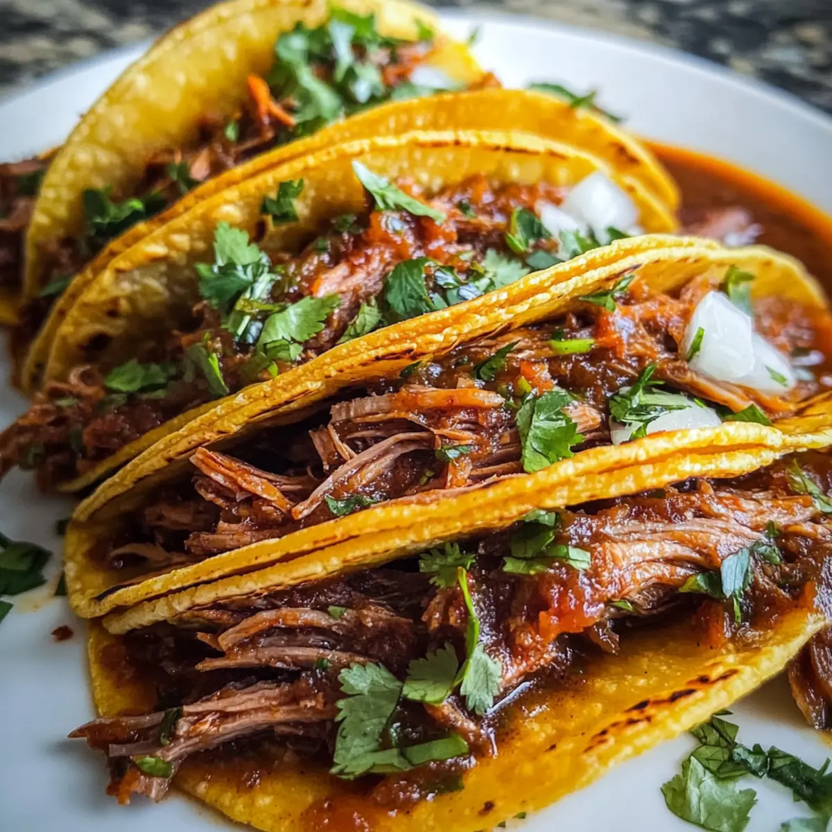 Pickled Red Onions: Their tangy crunch brings a delightful zing that cuts through the richness of the birria, adding depth and interest to each taco.