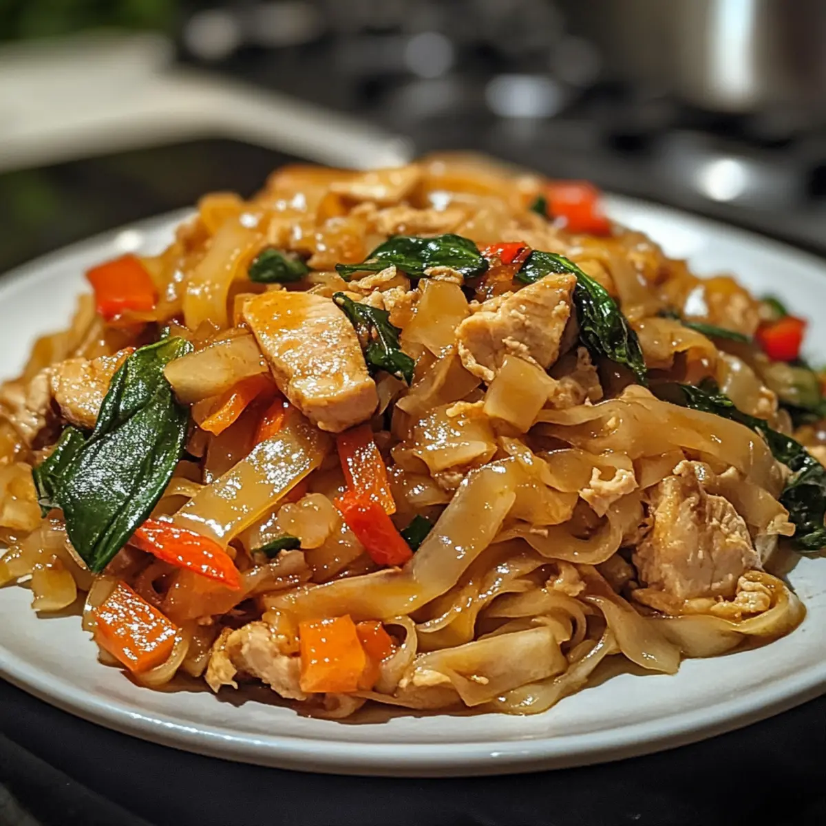 The sizzling sound of noodles hitting a hot wok transports me straight to the bustling streets of Thailand, where the aroma of Drunken Noodles fills the air. Known as pad kee mao, this dish is a vibrant and quick stir-fry that celebrates the perfect harmony of chewy rice noodles, tender meat or tofu, and crisp vegetables. With a robust sauce that infuses each bite with bold flavors, you can whip up these delightful noodles in under 20 minutes—perfect for any busy weeknight craving a taste of the exotic. Not only is this recipe a major crowd-pleaser and budget-friendly, but it also lets you flex your culinary skills at home without the hassle. Are you ready to elevate your dinner routine and impress your loved ones with this quick Thai classic?