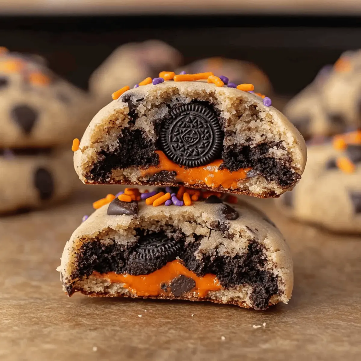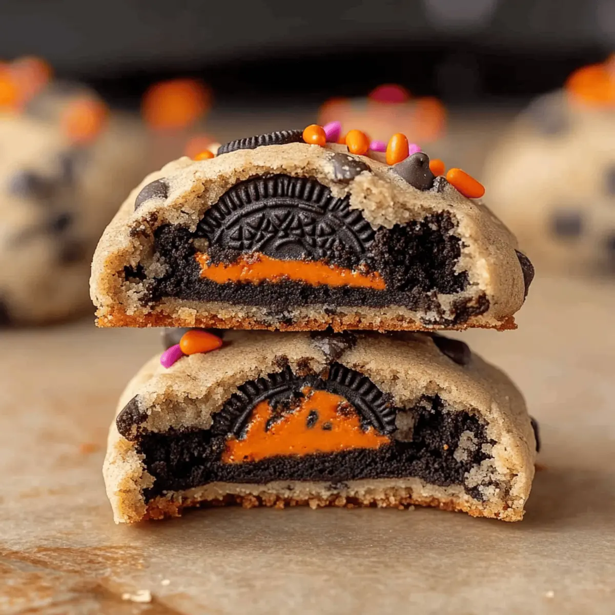 Absolutely! You can use Halloween Oreos for a festive touch, but feel free to swap in regular Oreos or any seasonal, cream-filled cookie you love. Each will give your cookies a delightful surprise center that will enchant your guests!