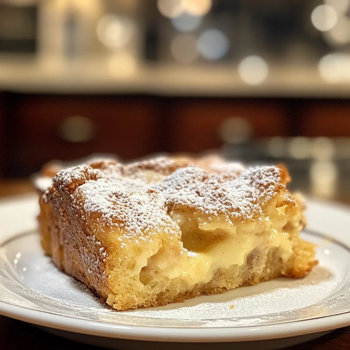 Once baked, remove your Eggnog Bread Pudding from the oven and allow it to cool for 20 to 30 minutes. This cooling period helps it set further, making it easier to slice. Before serving, dust the top with powdered sugar for a festive touch, and consider pairing it with whipped cream or a drizzle of eggnog sauce for added indulgence.