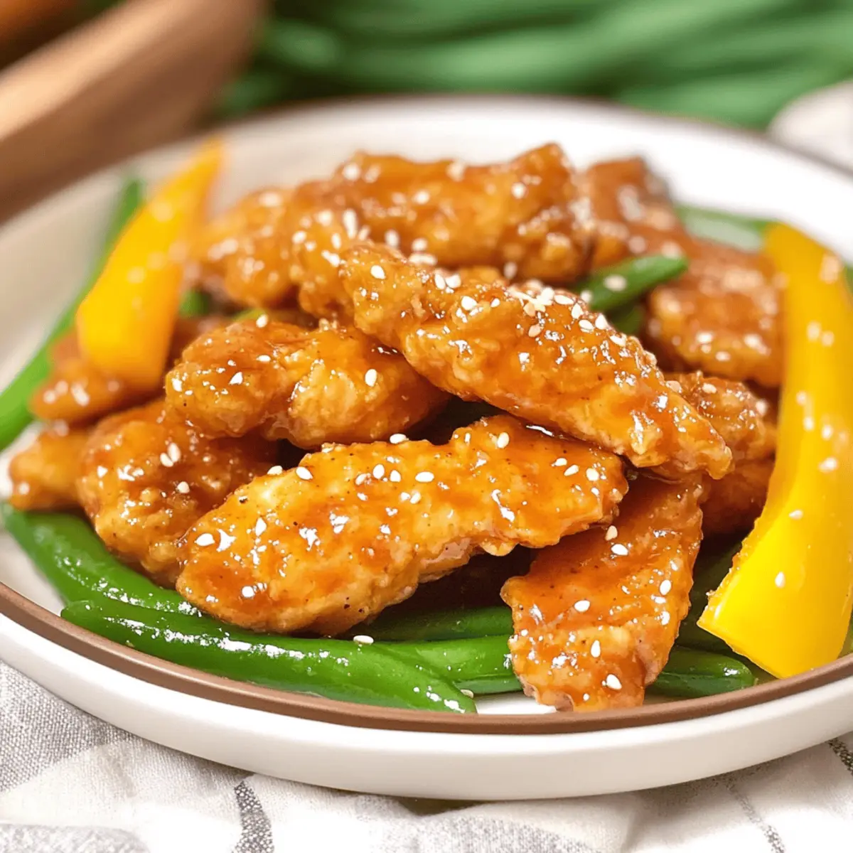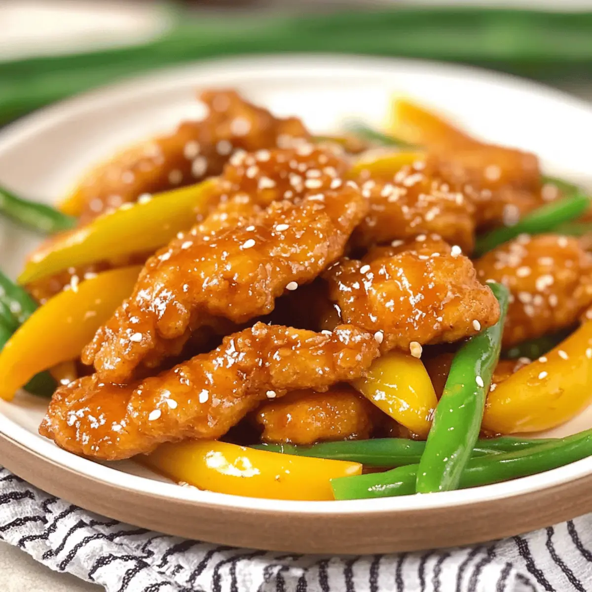 As the aroma of sizzling chicken fills the kitchen, I can’t help but feel a sense of nostalgia wash over me—it’s like I’m back at my favorite takeout spot, but without the gluten or dairy! This Gluten-Free Honey Sesame Chicken is my healthier rendition of the beloved Panda Express classic, and it’s bursting with crispy deliciousness. The sweet-and-sour honey sauce envelops tender chicken strips, complemented by vibrant sautéed bell peppers and crunchy green beans. Not only does this dish cater to those with dietary restrictions, but it also brings the kind of comforting familiarity that makes any dinner feel special. And the best part? It’s quick to prepare, making it perfect for a weeknight family meal. Ready to relish that homemade magic? Let’s dive into this delightful recipe!