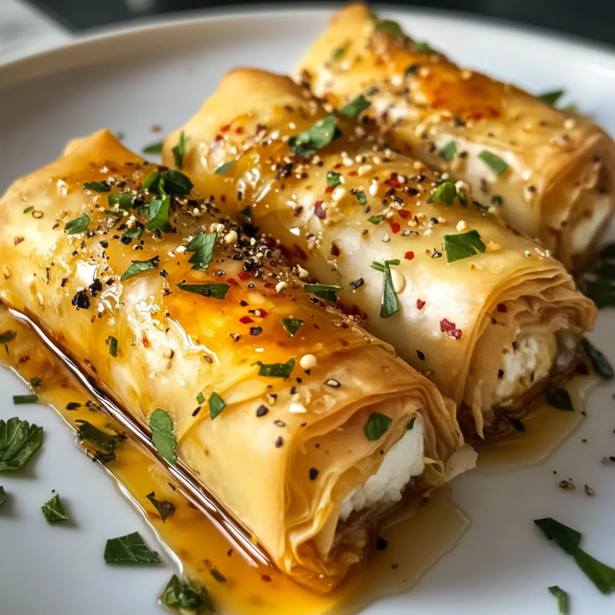 As I rummaged through my pantry, searching for inspiration, I stumbled upon a treasure: phyllo pastry. Instantly, my mind whisked me off to the vibrant Mediterranean where flavors dance and laughter lingers. That’s when I decided to create crispy oven-fried feta rolls with chili honey. This recipe is a delightful adventure for your taste buds—each bite is a perfect balance of crunchy texture and creamy feta, enhanced by the zesty surprise of fresh herbs. What’s more, these rolls are incredibly beginner-friendly, making them perfect for both seasoned home chefs and those new to the kitchen. Whether you’re looking to impress at your next gathering or seeking a cozy night in with comforting snacks, these feta rolls with chili honey are sure to become a fast favorite! Are you ready to take your appetizer game to the next level? Let’s dive in!
