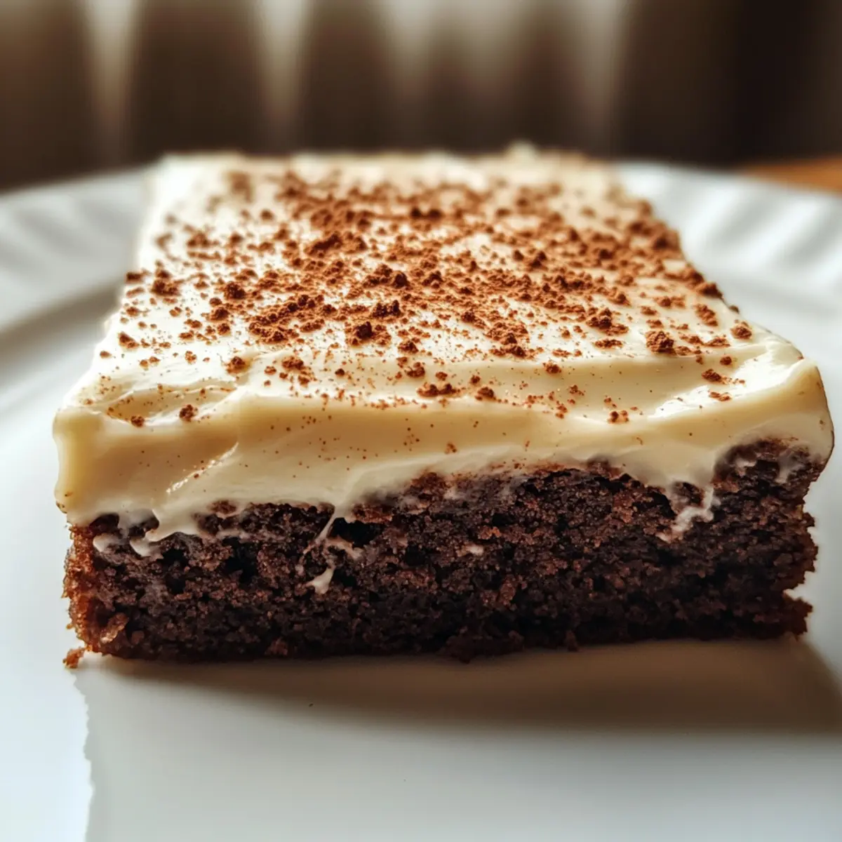 - Spread the eggnog frosting generously over the cooled brownies and sprinkle cinnamon on top. Cut into squares and serve.