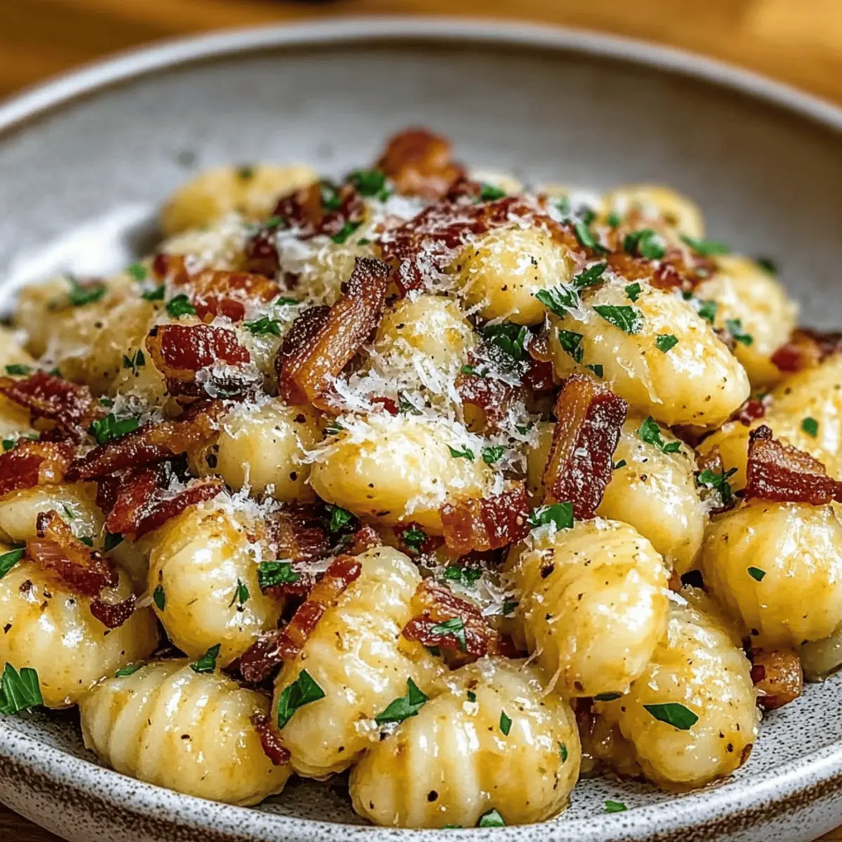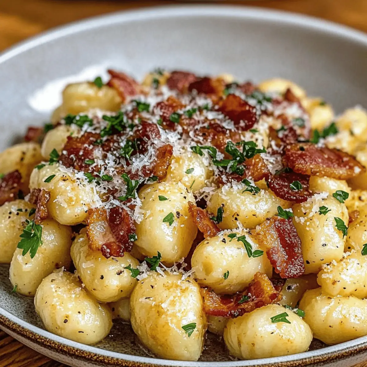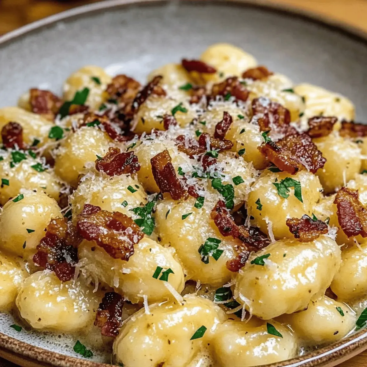 Creamy Gnocchi Carbonara with Bacon & Parmesan Bliss