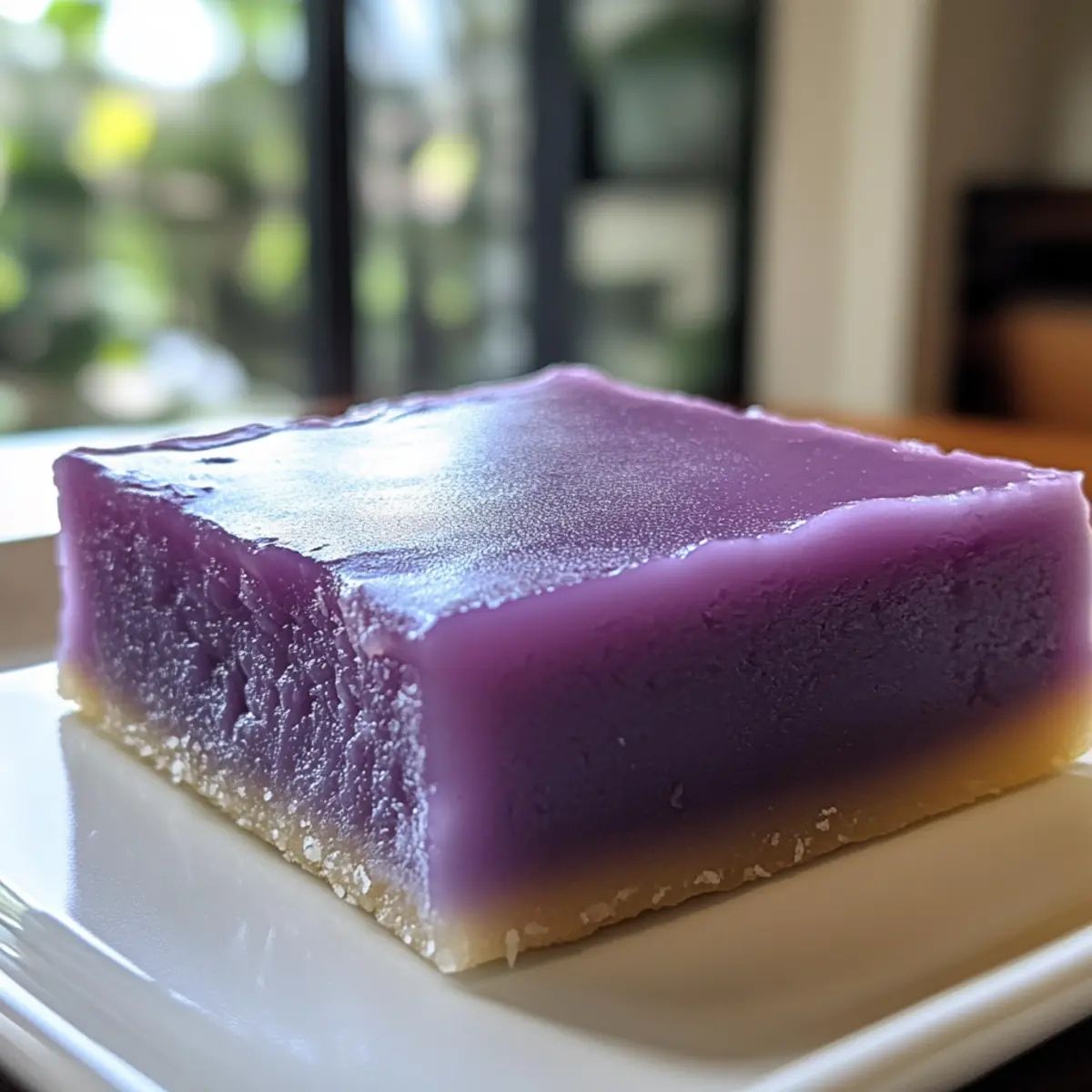 Fruity Twist: Incorporate chopped tropical fruits like pineapple or mango into the batter before baking for an exotic burst of flavor. The fruits will lend a refreshing taste that complements the rich coconut and ube.