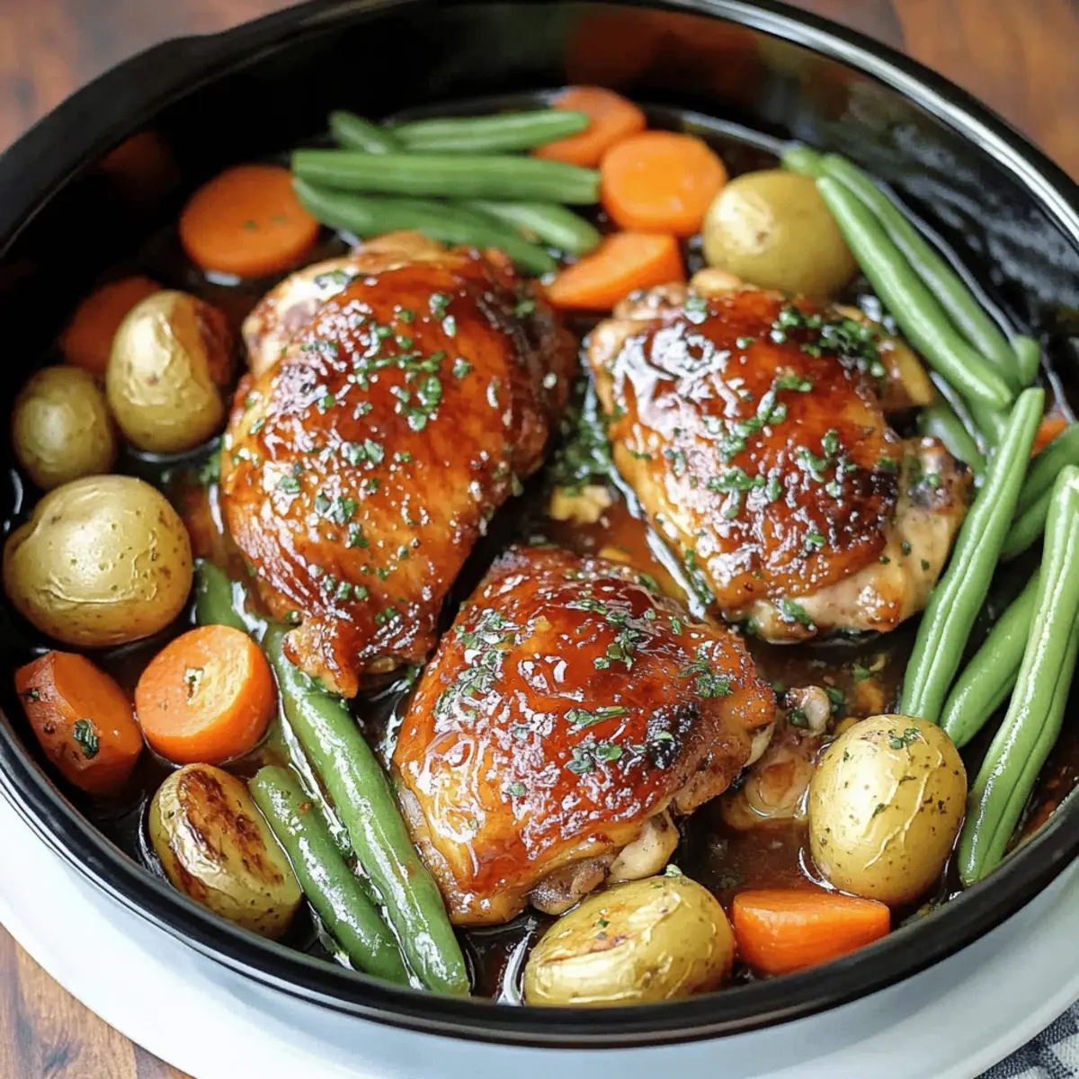 About 30 minutes before serving, stir in 1 cup of fresh green beans. Mixing them in during the final stretch of cooking preserves their vibrant crunch and color, adding a delightful contrast to the tender chicken and veggies. This final addition completes the Honey Garlic Chicken and Veggies beautifully.