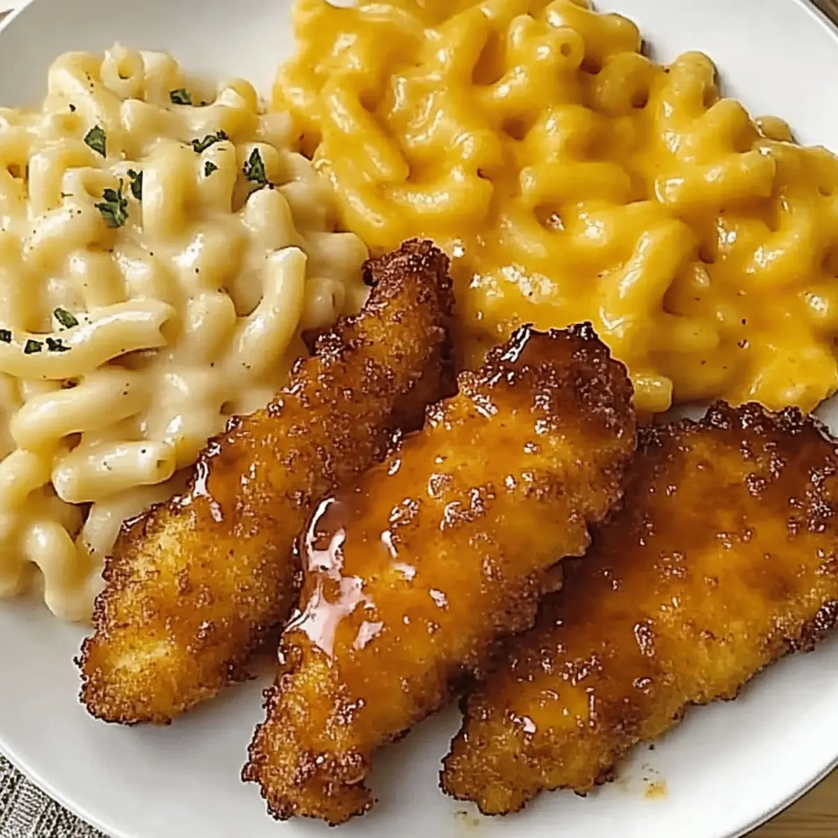 As the comforting aroma of sizzling chicken wafted through my kitchen, I couldn’t help but smile at the memories it stirred. Introducing my take on Hot Honey Chicken Tenders with Baked Mac and Cheese—a delightful dish that effortlessly merges crispy, golden tenders with smooth, cheesy goodness. This recipe stands out not only for its irresistible flavor but also for its quick prep time, making it the perfect comfort food after a busy day or a fun weekend dinner with loved ones. Each bite of the spicy-sweet honey glaze on the chicken pairs beautifully with the rich, creamy macaroni, creating a hearty meal that warms your heart. Are you ready to transform your dinner table into a comforting Southern feast? Let’s dive into this delicious culinary adventure!