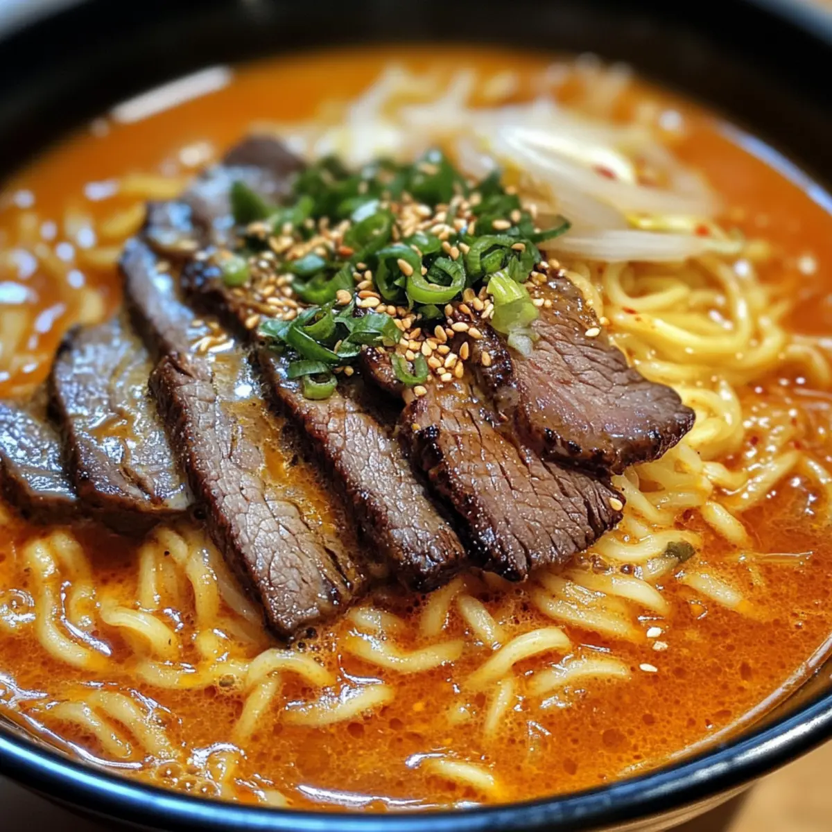 The sizzling sound of beef hitting the grill is music to my ears, especially when I’m about to whip up a bowl of Spicy Korean Ramen with Grilled Beef & Creamy Sauce. This recipe strikes a perfect balance between cozy comfort and vibrant flavor, making it an ideal quick dinner option for busy weeknights. Picture springy ramen noodles soaking in a fiery broth, while juicy grilled beef adds that satisfying protein punch. With just a handful of ingredients and the option to customize it for vegetarians, this dish caters to everyone at your table. Whether you’re indulging solo or impressing guests, every vibrant slurp delivers warmth and spice that’ll keep you coming back for more. So, are you ready to dive into a bowl of deliciousness? Let’s get cooking!