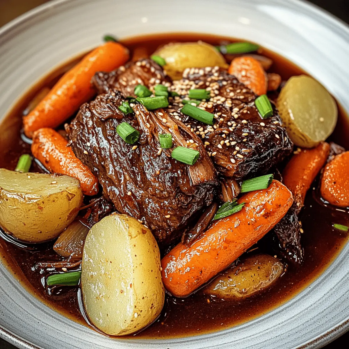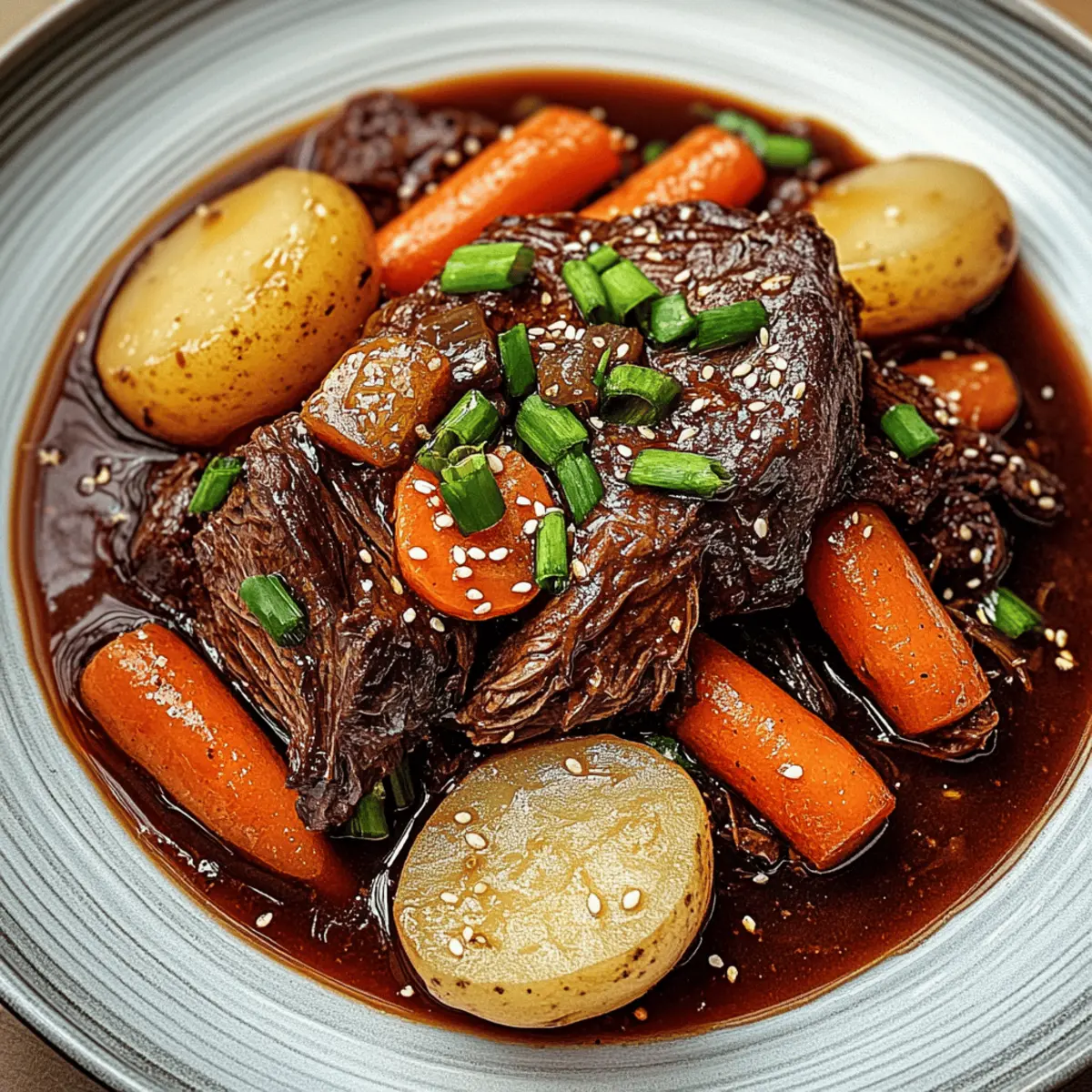 Heartwarming Comfort: This Korean Style Pot Roast is the embodiment of cozy dinners, perfect for snuggling up with family or friends. Unique Flavors: The sweet and spicy notes from gochujang and brown sugar create an unforgettable taste experience. Minimal Effort: With just a few easy prep steps, you can set this dish in the oven and let it do the magic, freeing up your time to relax. Crowd-Pleaser: Serve it with steamed rice or alongside a crisp salad, making it a versatile hit at gatherings. For an added touch, consider pairing it with Herb Roasted Potatoes to elevate your meal!