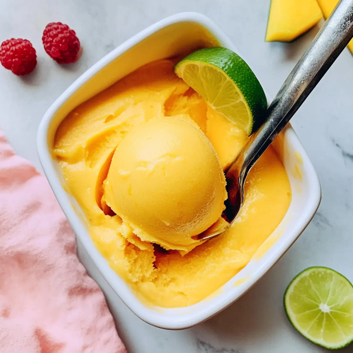 The air is thick with the sweetness of summer, and nothing offers a more refreshing escape than a bowl of chilled mango sorbet. With just three ingredients—frozen mango, maple syrup, and a squeeze of fresh lime juice—this 3-Ingredient No-Churn Mango Sorbet is not only incredibly simple to whip up but also naturally sweetened and vegan! It’s the perfect guilt-free treat to cool down on hot days, with the option to serve it immediately for a soft, creamy delight or freeze for a firmer texture later. And if you’re feeling adventurous, you can easily swap in some frozen raspberries for a vibrant Mango Raspberry Sorbet. Are you ready to discover the joy of homemade sorbet like never before?
