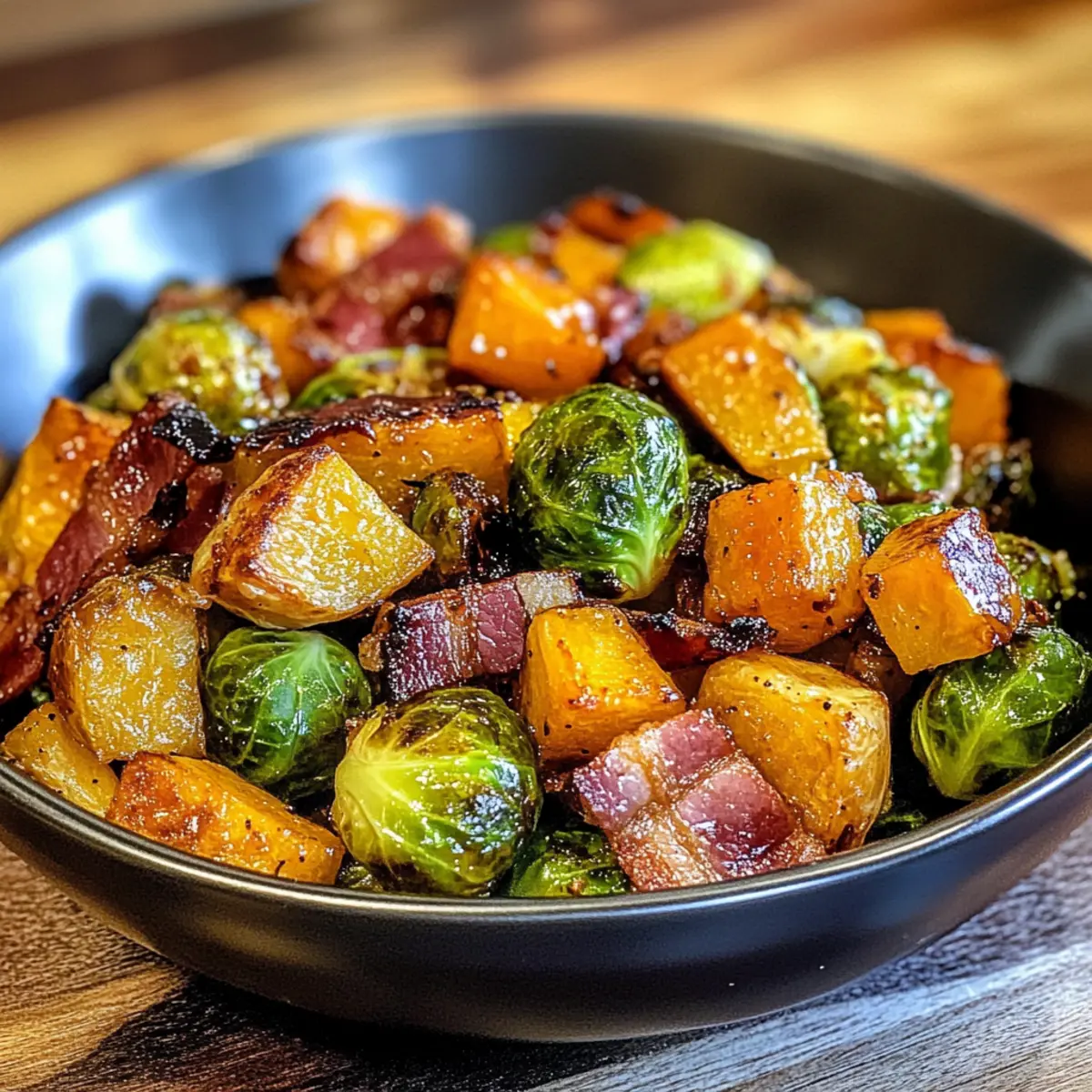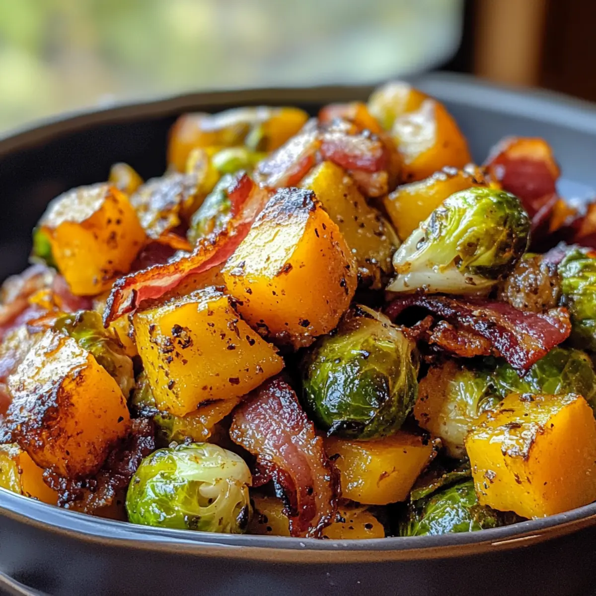 Maple Butternut Brussels Bacon: Sweet Savory Comfort Dish