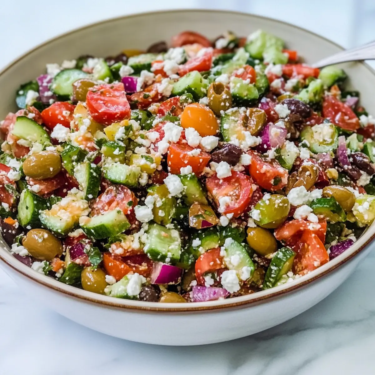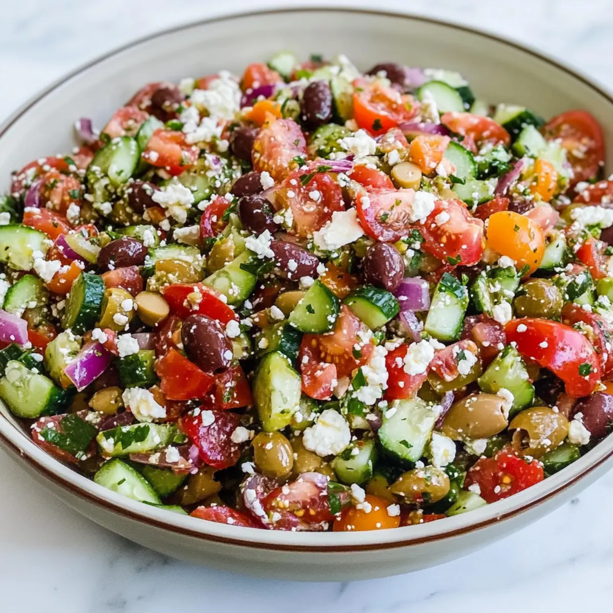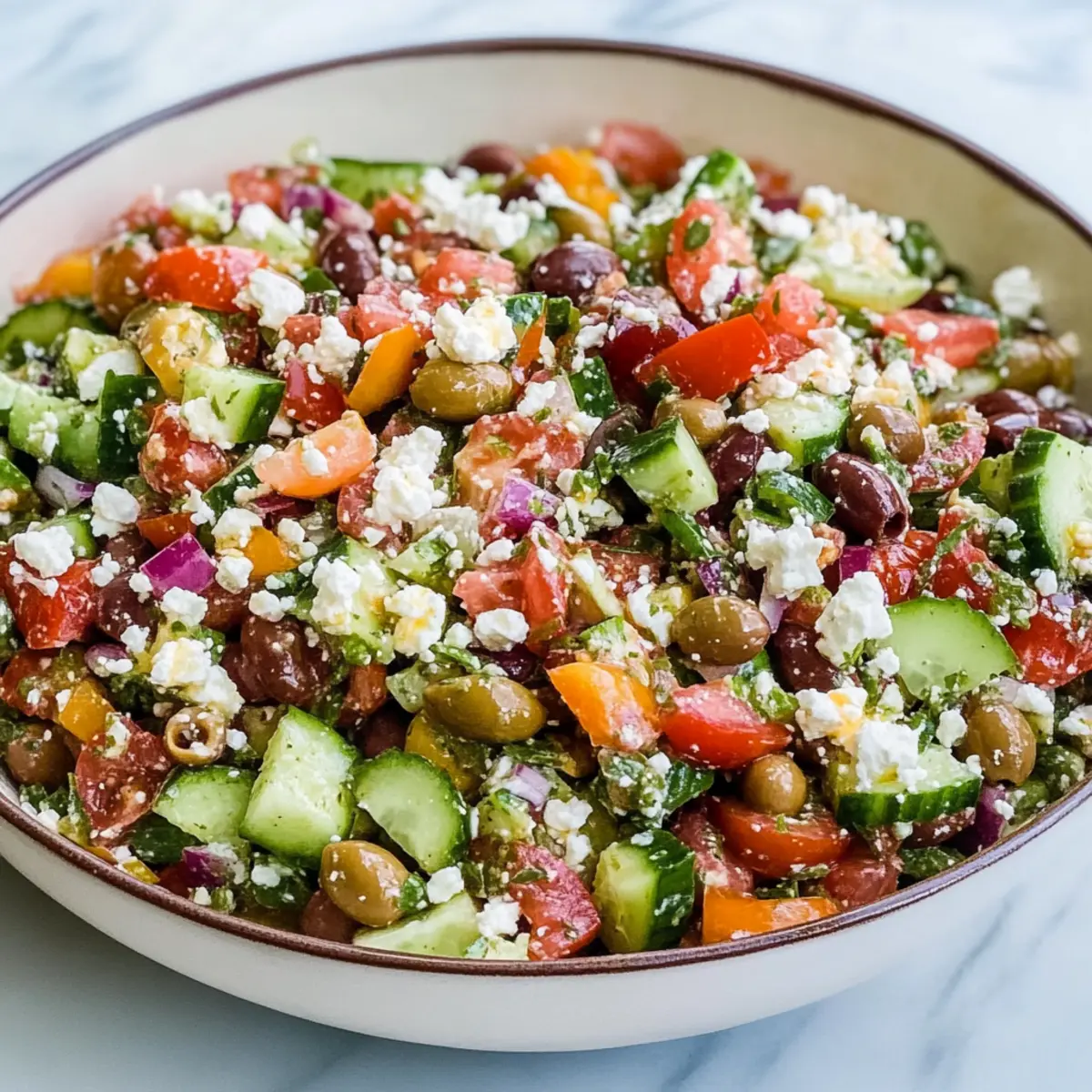 Bursting with flavor, this Mediterranean Chopped Salad combines vibrant, fresh ingredients that will elevate any meal. Low-carb joy means you can indulge guilt-free while savoring every crunchy bite. Easy to prepare, it’s perfect for those busy weeknights or spontaneous gatherings with friends. Versatile for all diets, you can customize it with grilled chicken or nuts, making it an inclusive choice for everyone. A colorful centerpiece, this salad invites smiles and conversation at your table, making every meal a delightful occasion!