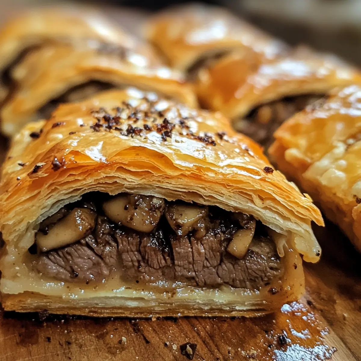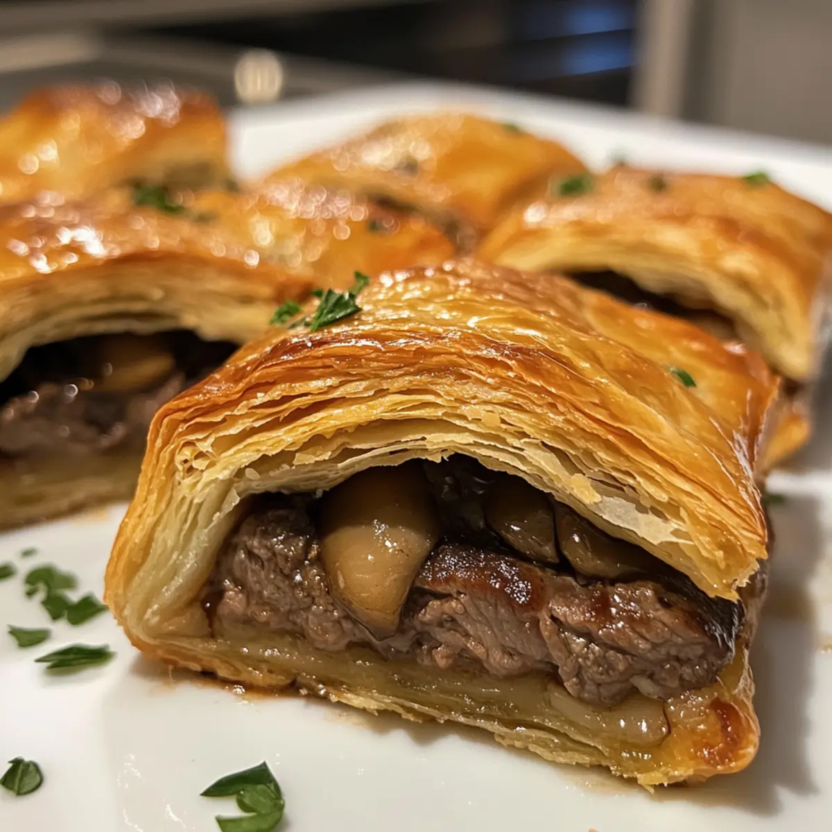 Textural Contrast: Enjoy the flaky puff pastry enveloping juicy beef and earthy mushrooms, creating a delightful mouthfeel in every bite.