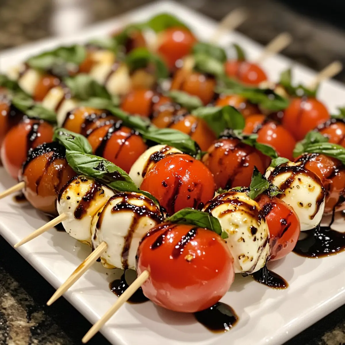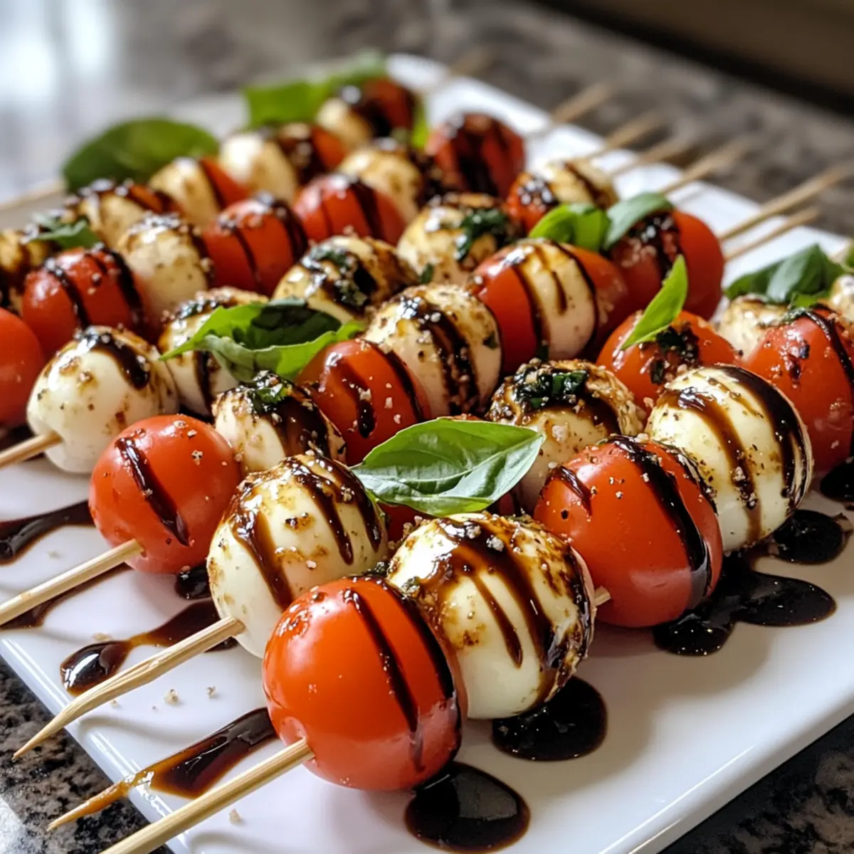 - Just before serving, drizzle balsamic glaze over the Mini Caprese Bites.