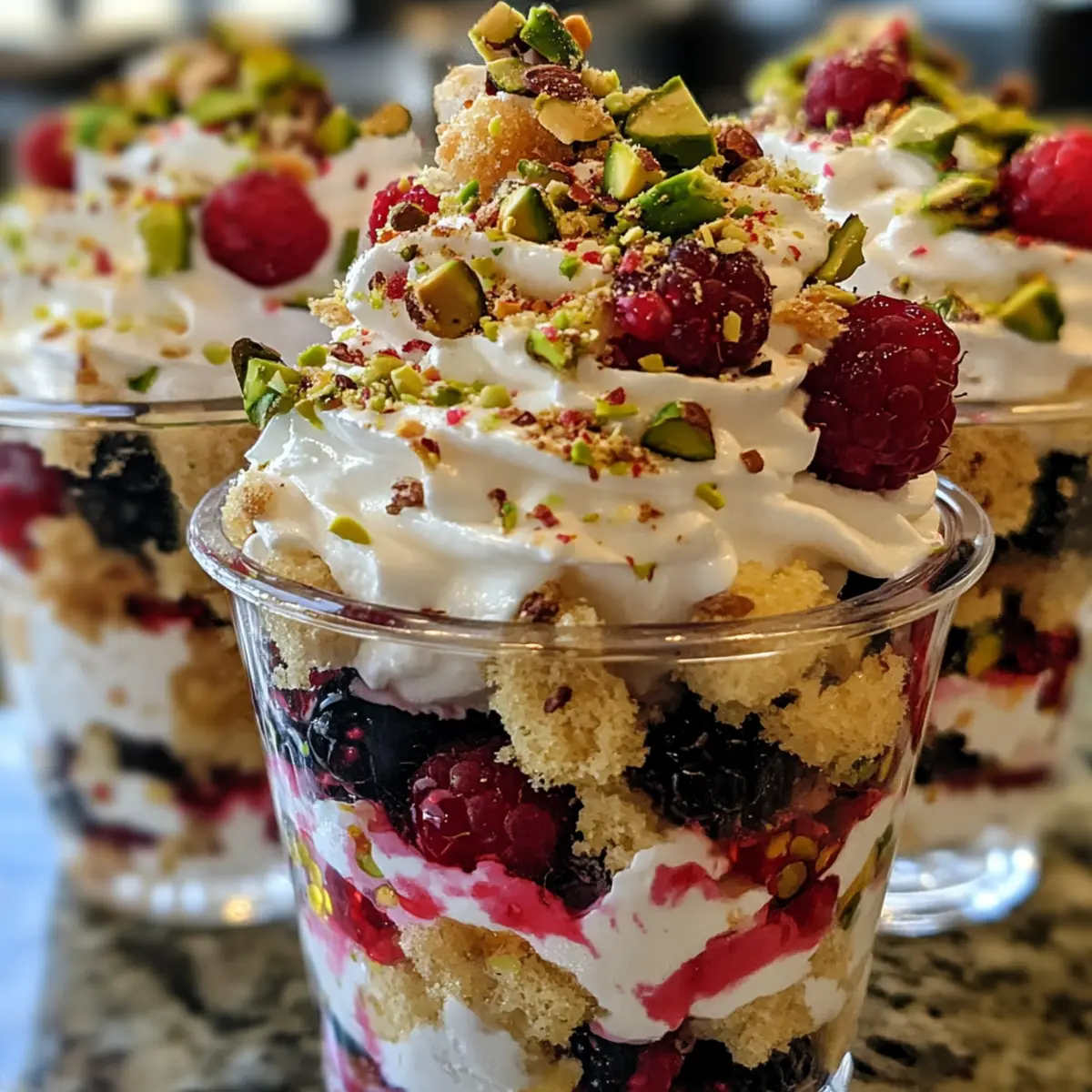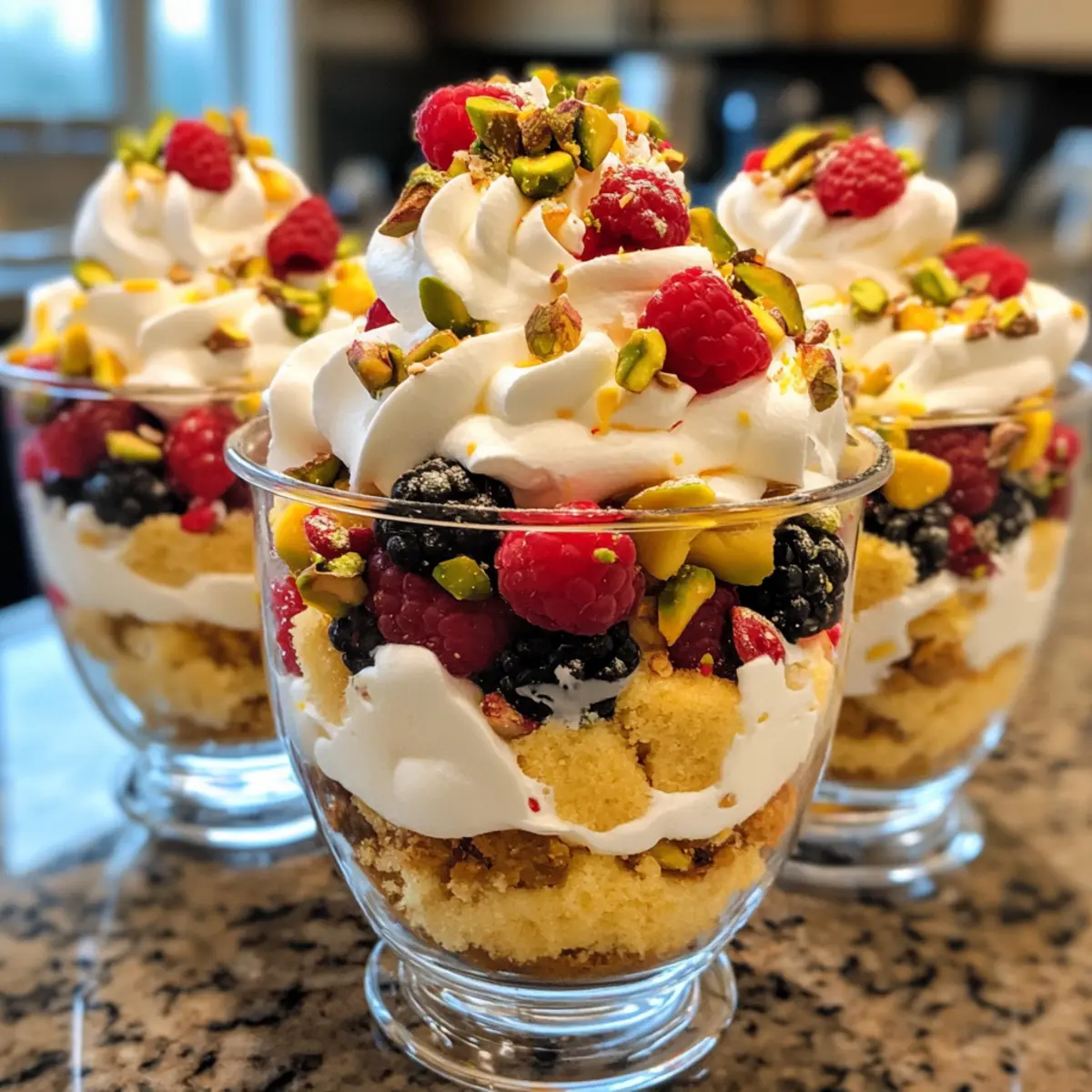 - Decorate the Top: Finish each trifle with whipped cream, pistachios, and sprinkles.