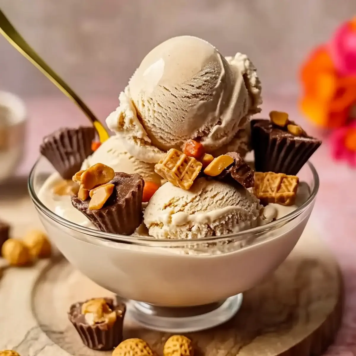 Creamy Bliss: Imagine scooping into a velvety bowl of peanut butter cup ice cream, where each bite transports you back to childhood memories of sweet treats.