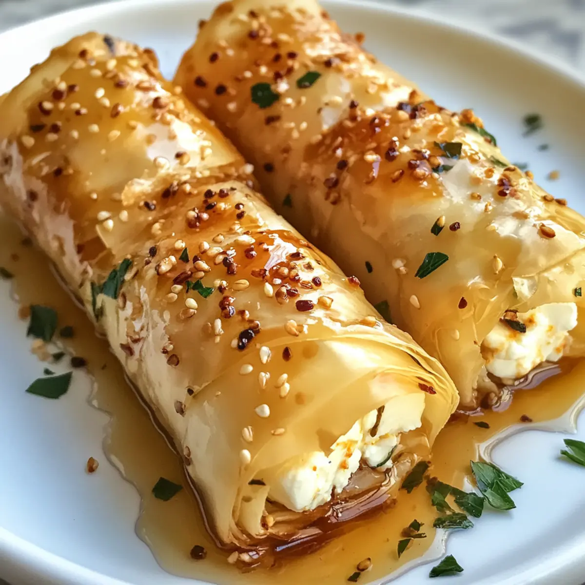 Crispy Oven Fried Feta Rolls with Chili Honey Bliss