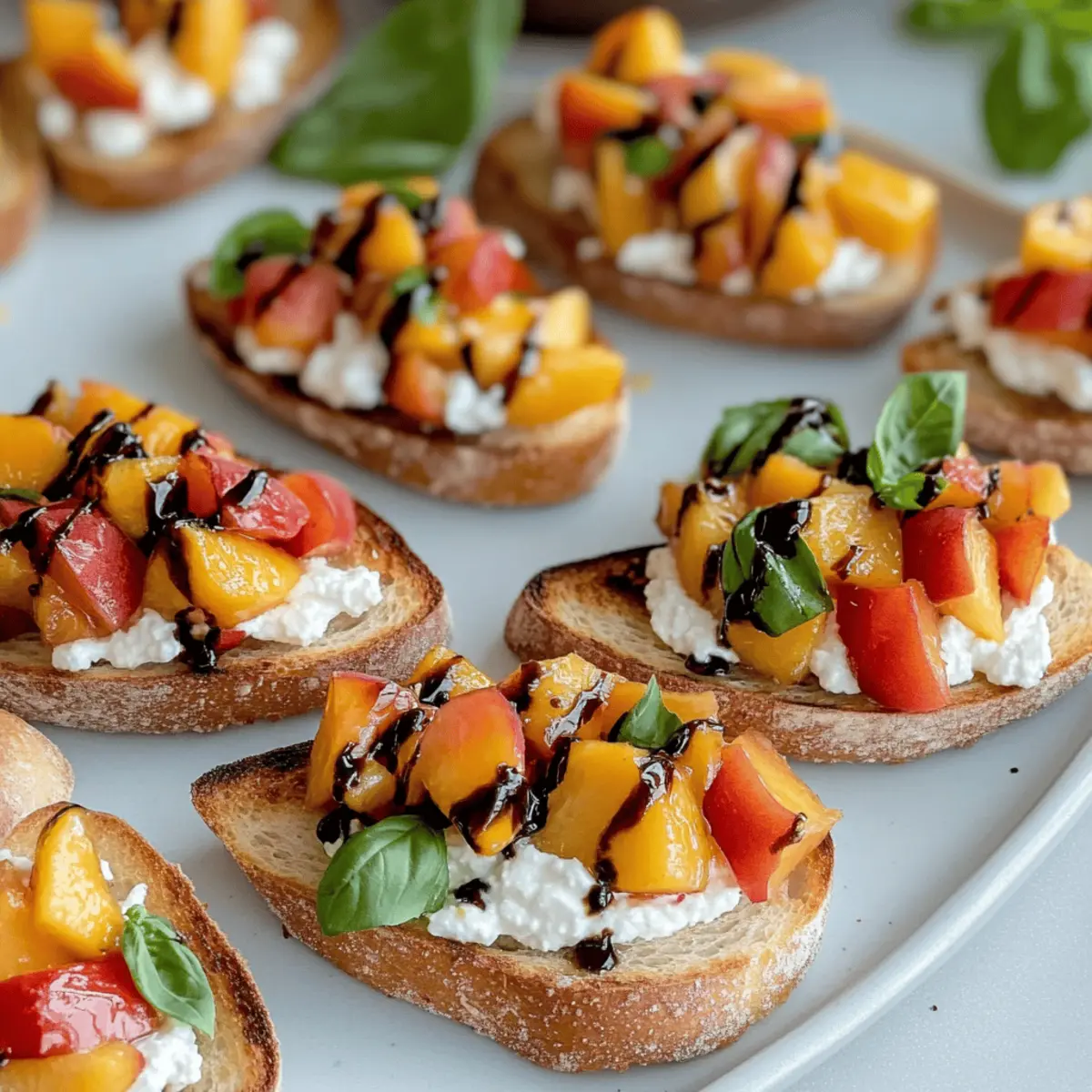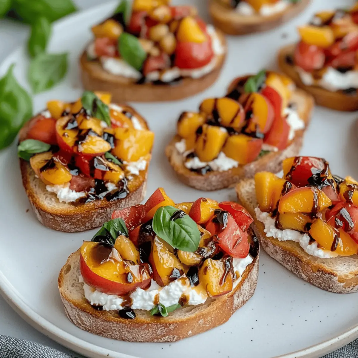 These Quick Peach Bruschetta with Whipped Ricotta are perfect for meal prep enthusiasts! You can prepare the whipped ricotta up to 3 days in advance; simply store it in an airtight container in the refrigerator to maintain its creamy texture. The peach-tomato topping can also be made ahead and refrigerated for up to 2 days—just remember to toss it gently before serving to refresh the flavors. However, to maintain the perfect crunch, toast the baguette slices right before serving for that delightful golden finish. This way, you’ll save valuable time during busy gatherings while still impressing your guests with a dish that’s just as delicious!
