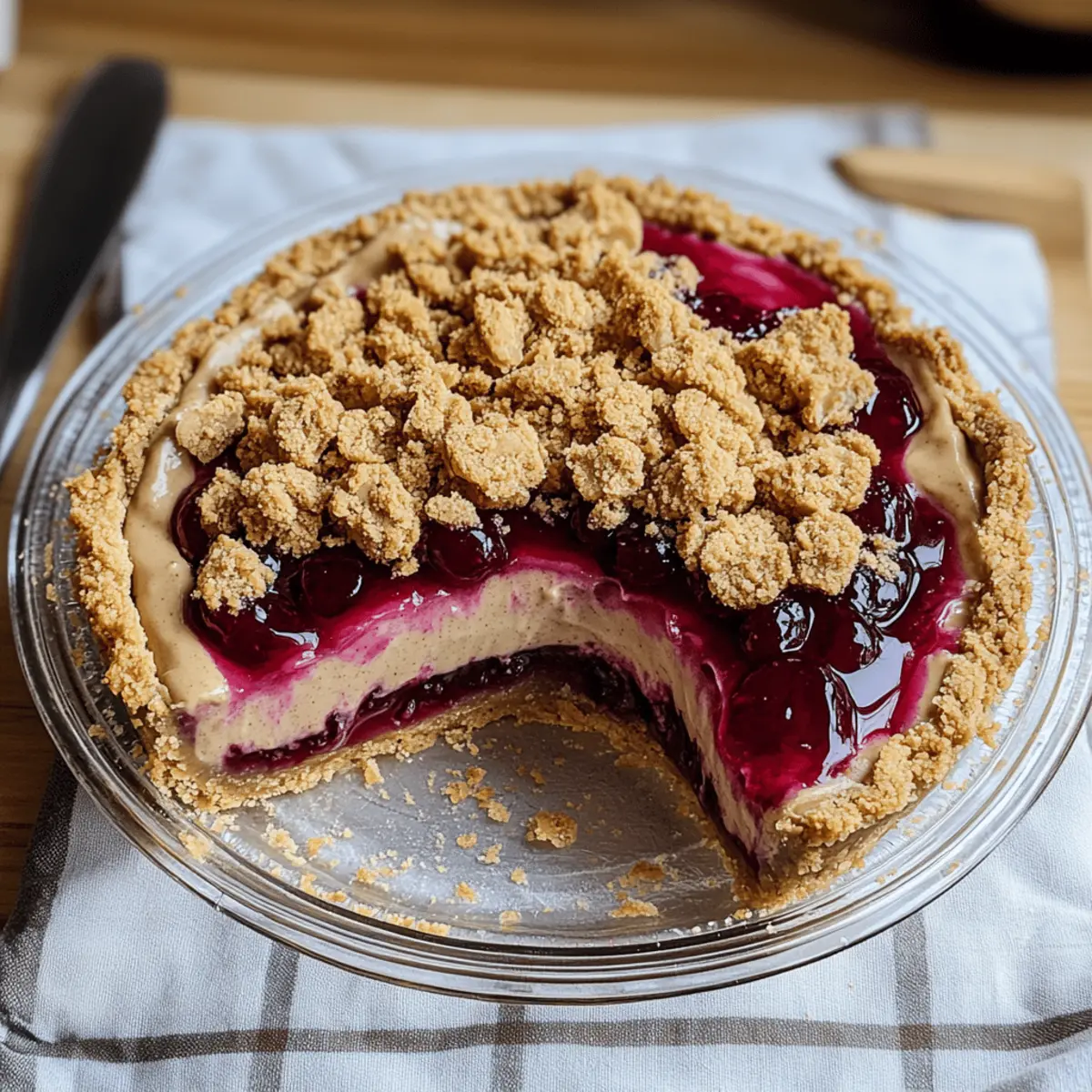 - Start by spreading the peanut butter filling evenly over the cooled pie crust in your 9-inch pie dish. Next, spoon the raspberry jelly evenly over the peanut butter layer, spreading it out gently to ensure coverage. Finally, sprinkle the cooled peanut butter crumb topping generously over the jelly layer.