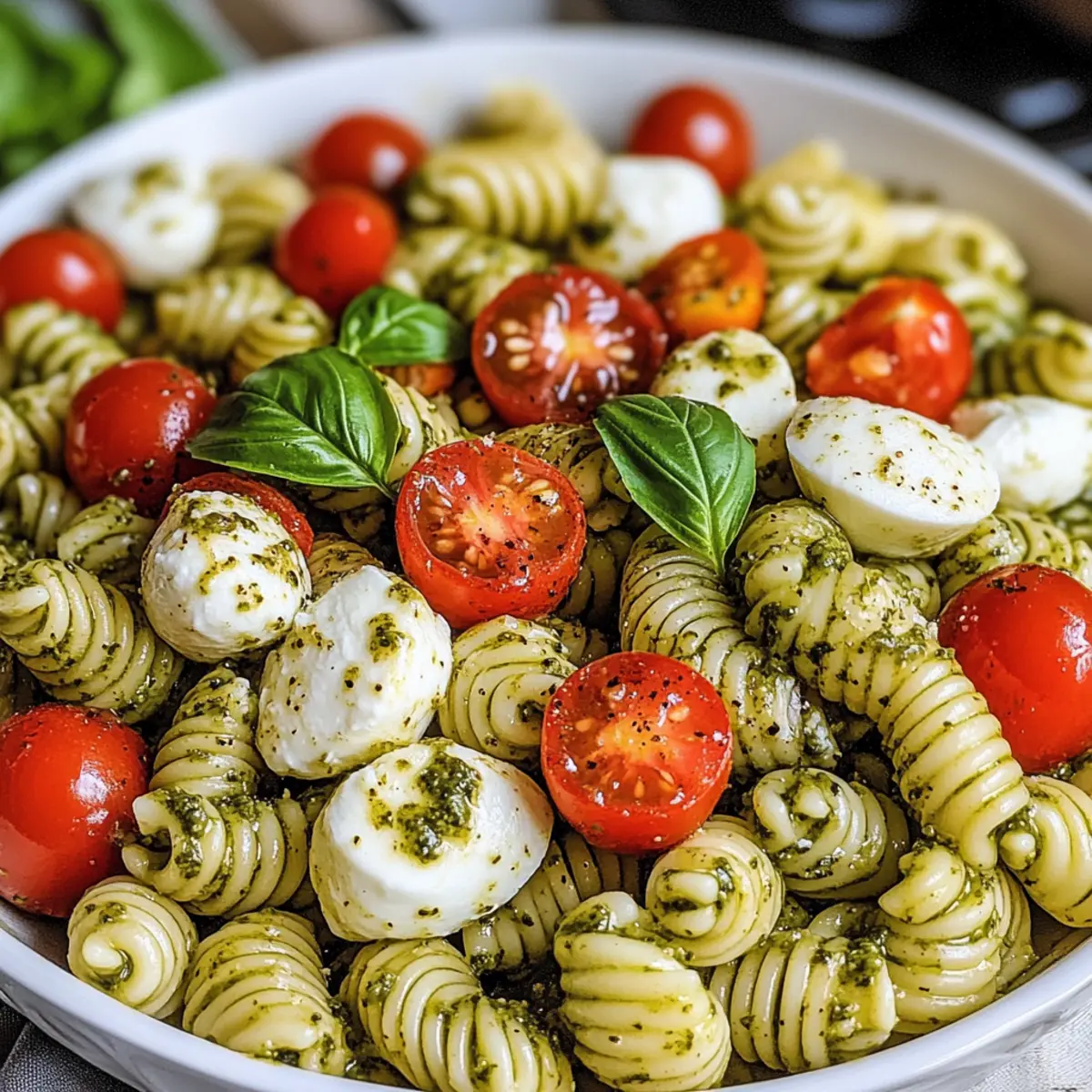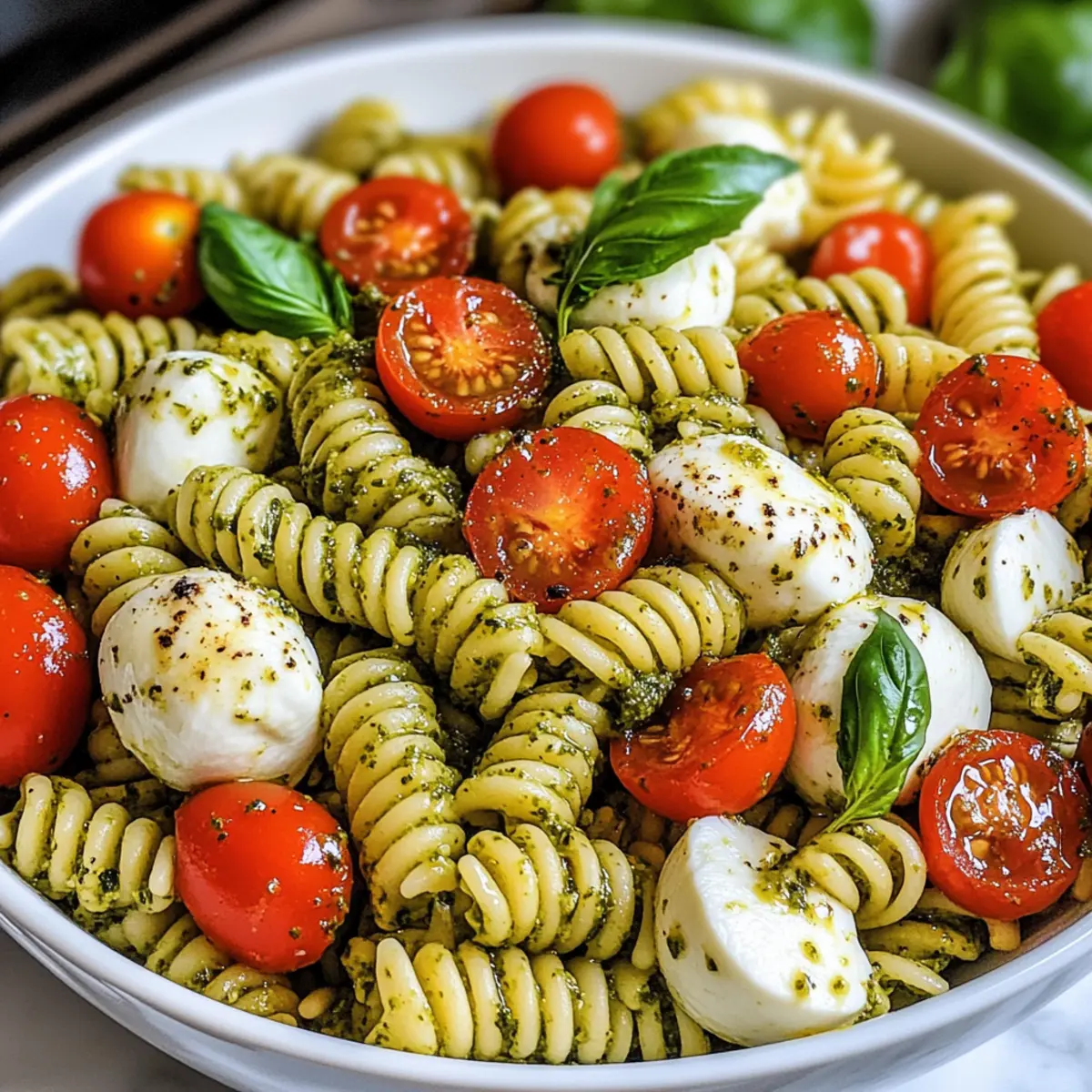 Enjoy crafting this vibrant and refreshing Pesto Caprese Pasta Salad that’s sure to become a favorite!