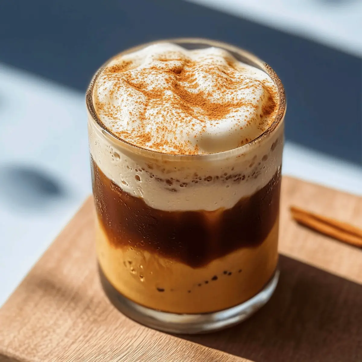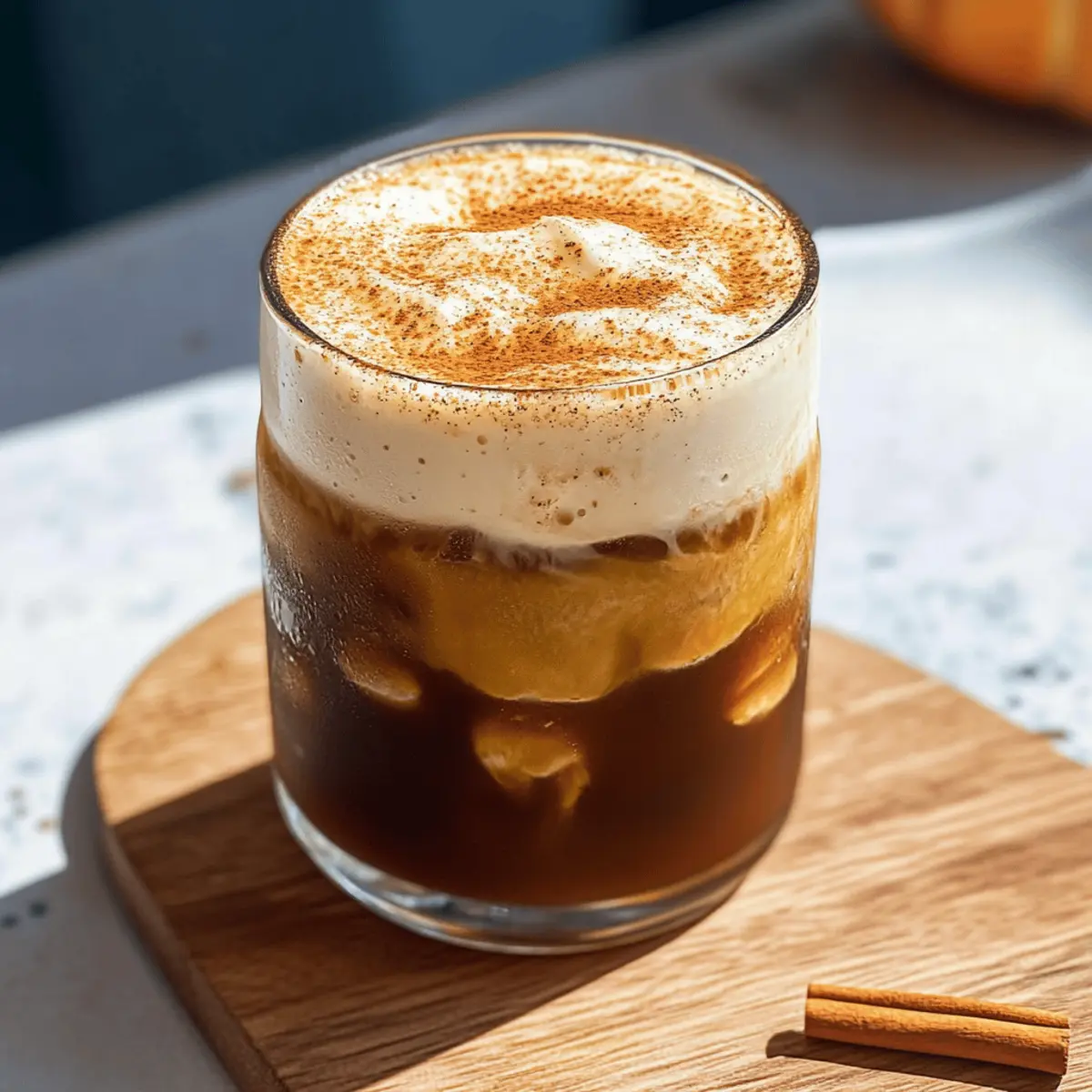- Spoon the frothed pumpkin cream cold foam over the iced coffee, allowing it to float on top.