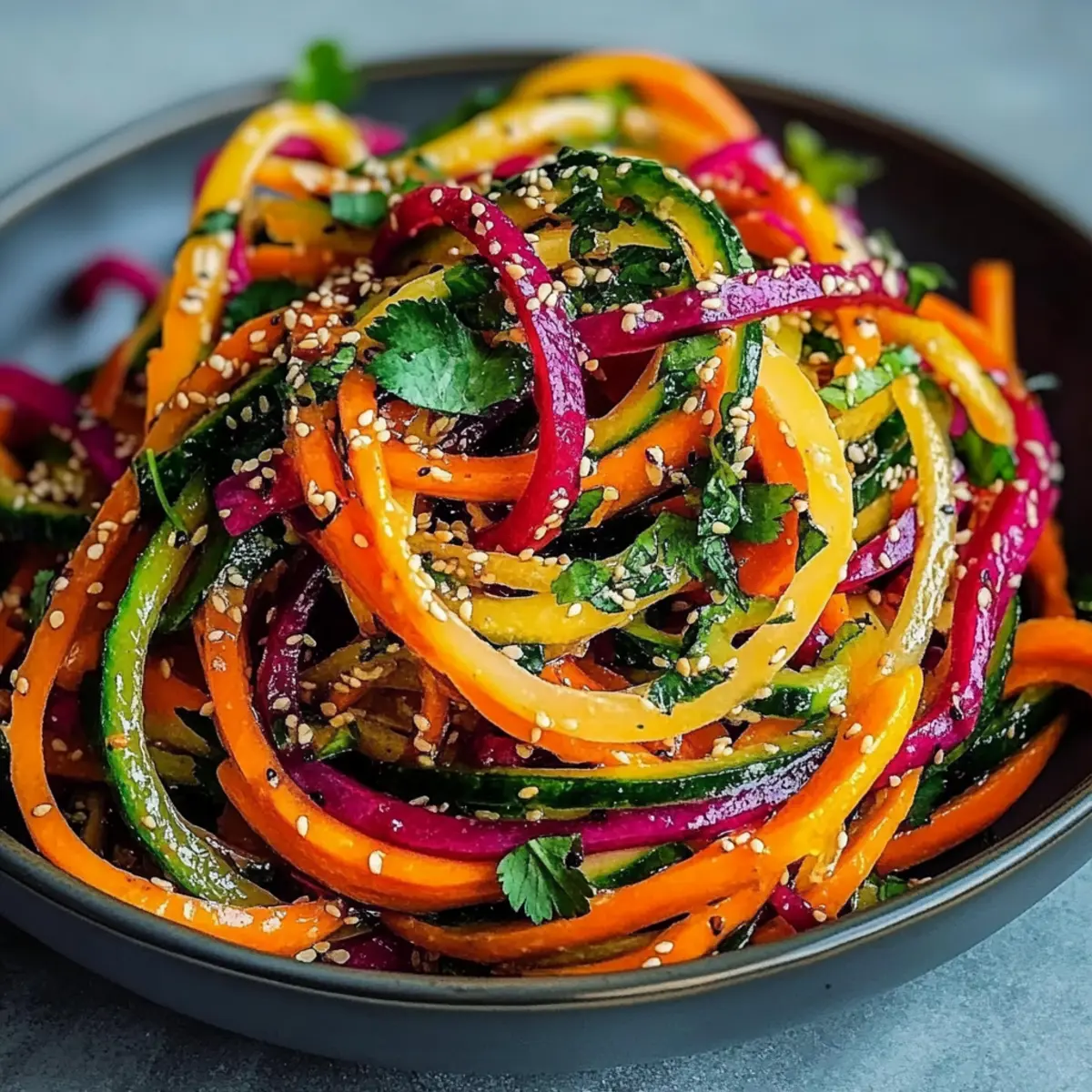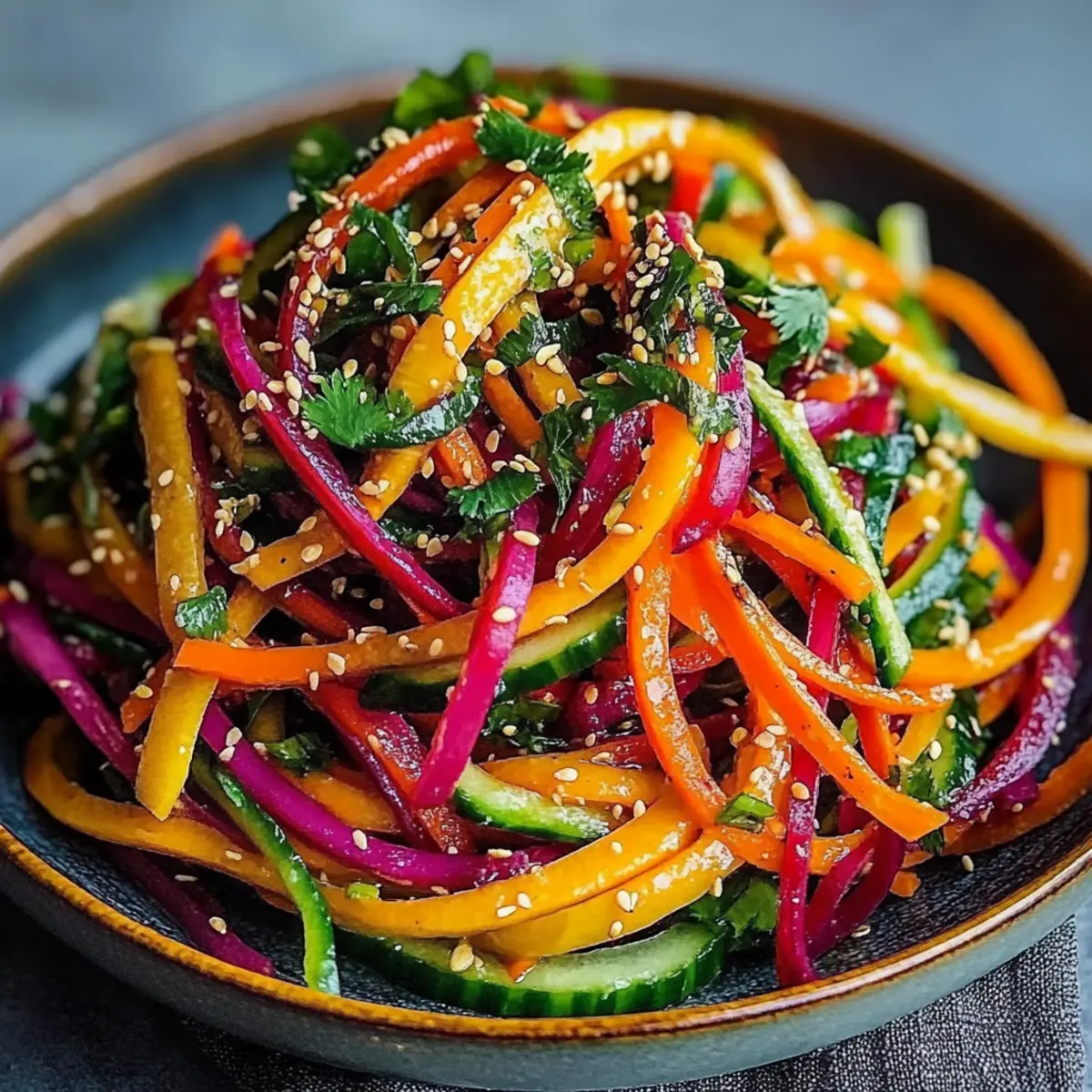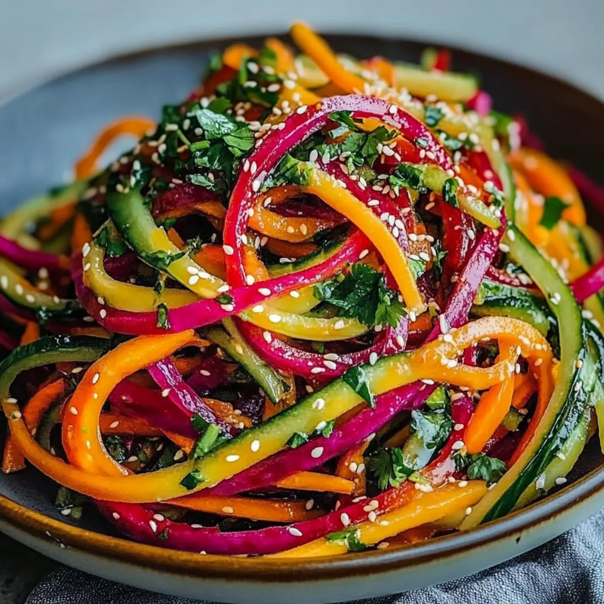 No worries! You can easily swap out ingredients. If you don’t have rainbow carrots, regular carrots work just fine. In place of cilantro, try parsley for a milder taste, or use apples for a sweet twist. The beauty of this salad is its versatility!