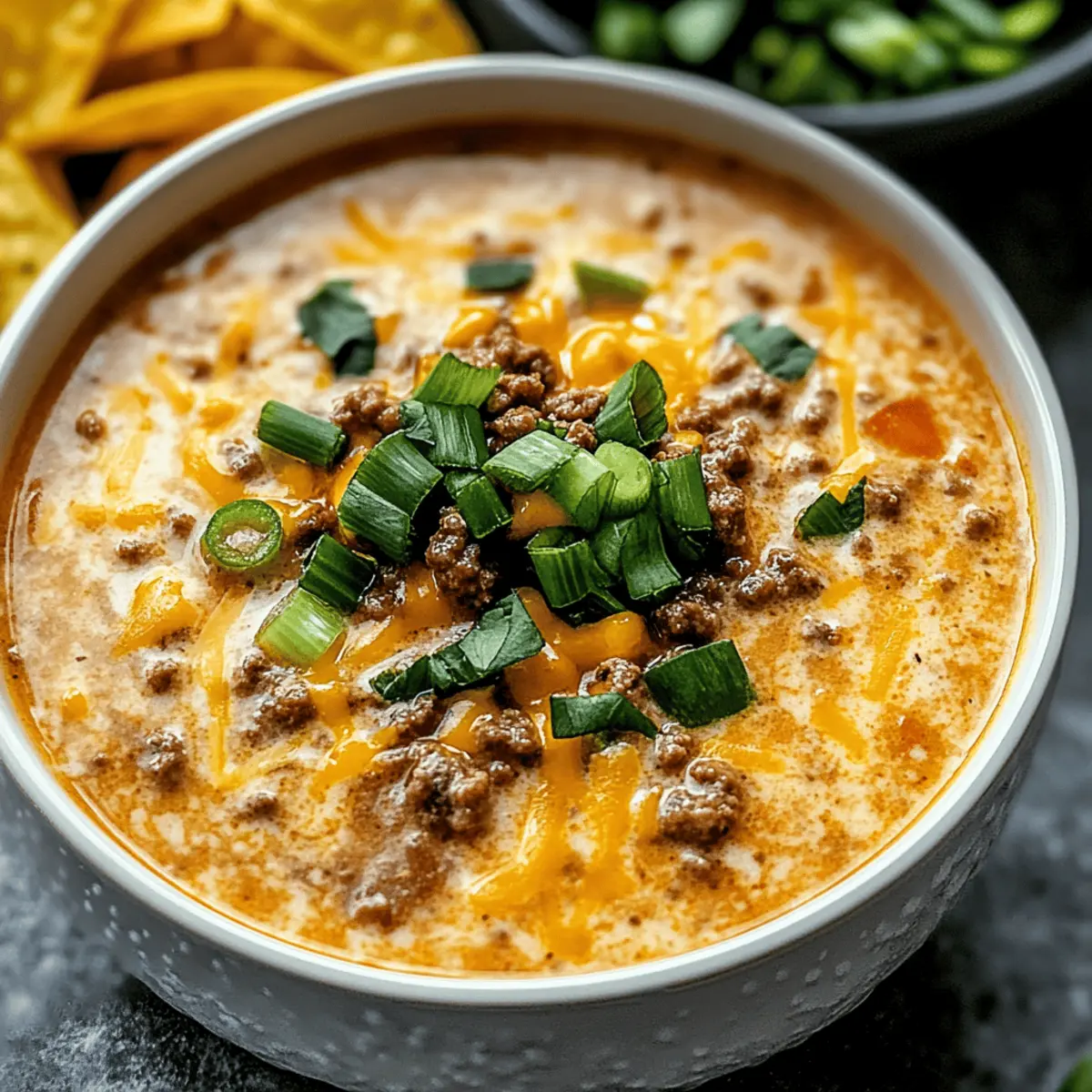 - Chopped Green Onions – Provides a pop of freshness and color; cilantro or avocado can also elevate your garnish!