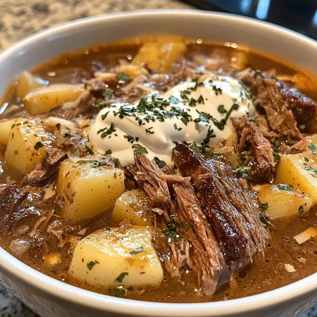 Herb Infusion: Add fresh herbs like thyme or rosemary during cooking for an aromatic boost. Their earthy flavors beautifully complement potato and brisket.